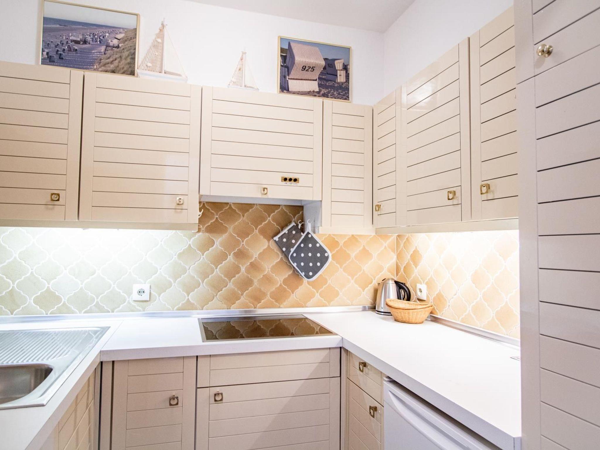 Küche mit Herd, Dunstabzug, Kühlschrank mit Eisfach, Filter-Kaffeemaschine, elektrischer Wasserkocher und Toaster sind selbstverständlich.