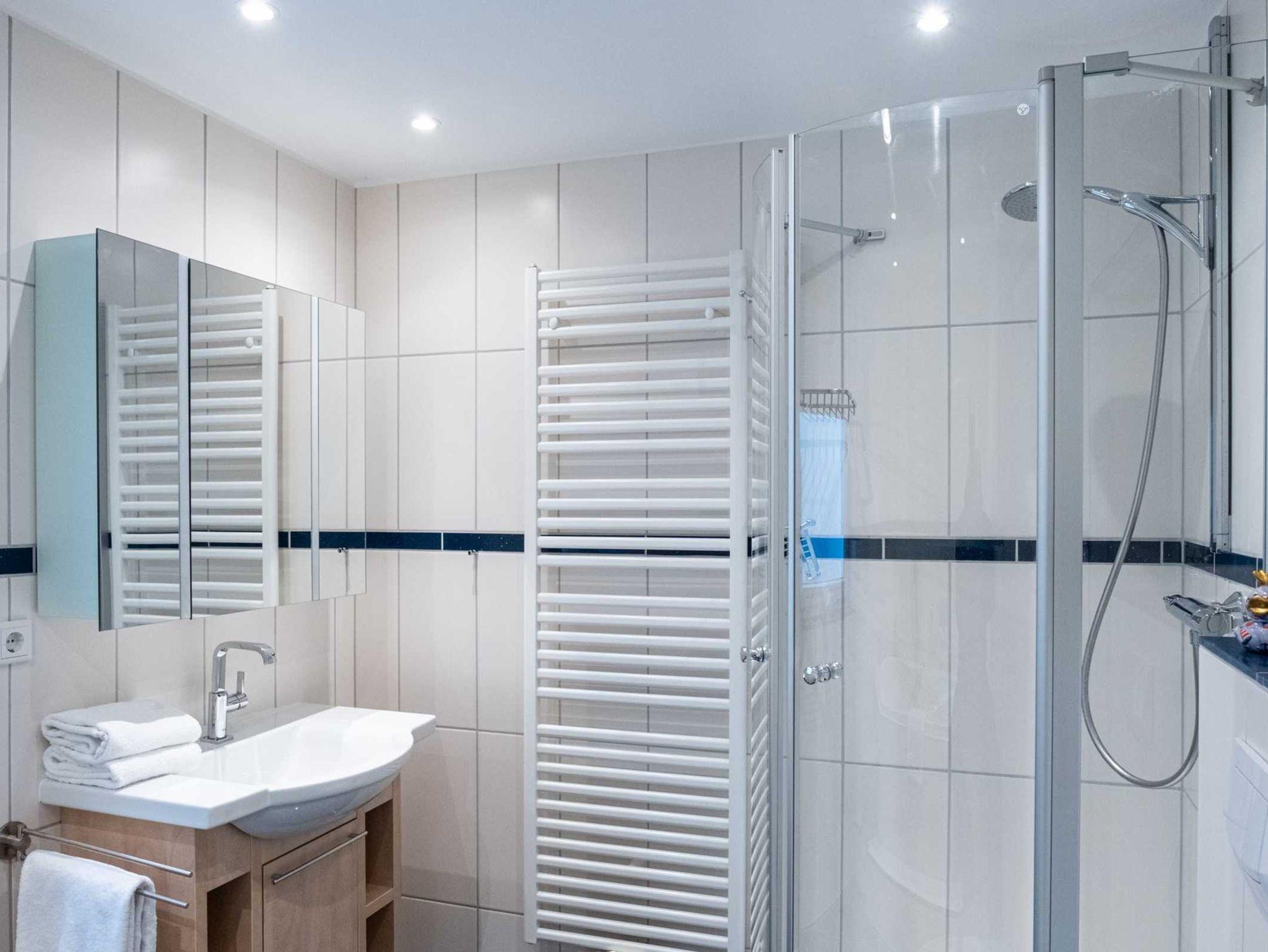 Zusätzlich finden Sie hier das kleine Gästebadezimmer mit Dusche.