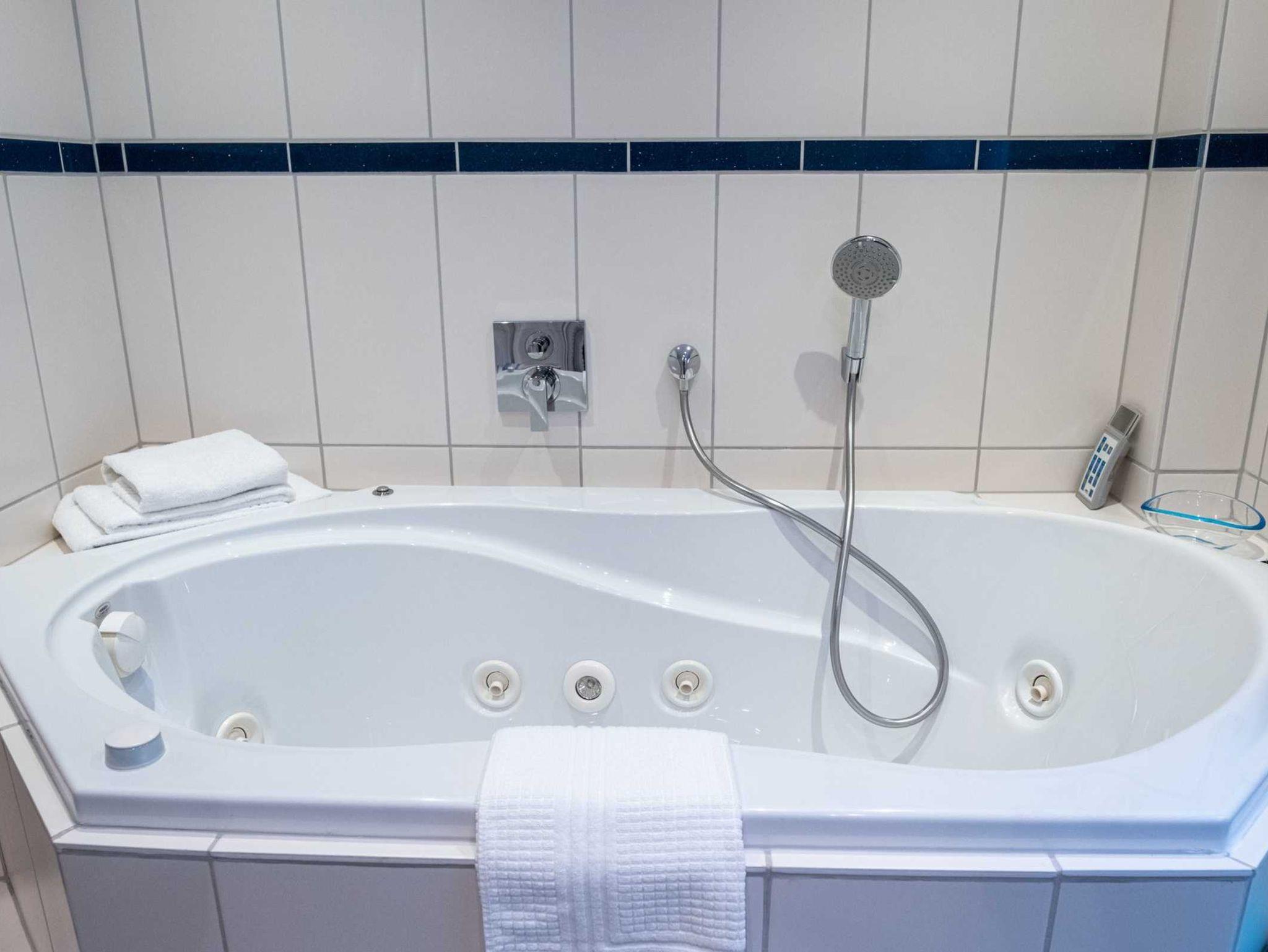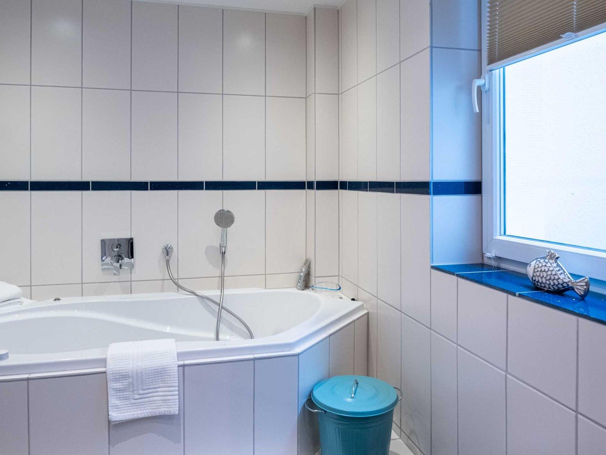 In dem Hauptschlafzimmer, sowie im kleinen Schlafzimmer befindet sich ebenso je ein Fernseher. Das große Badezimmer bfindet sich ebenfalls im UG des Hauses.