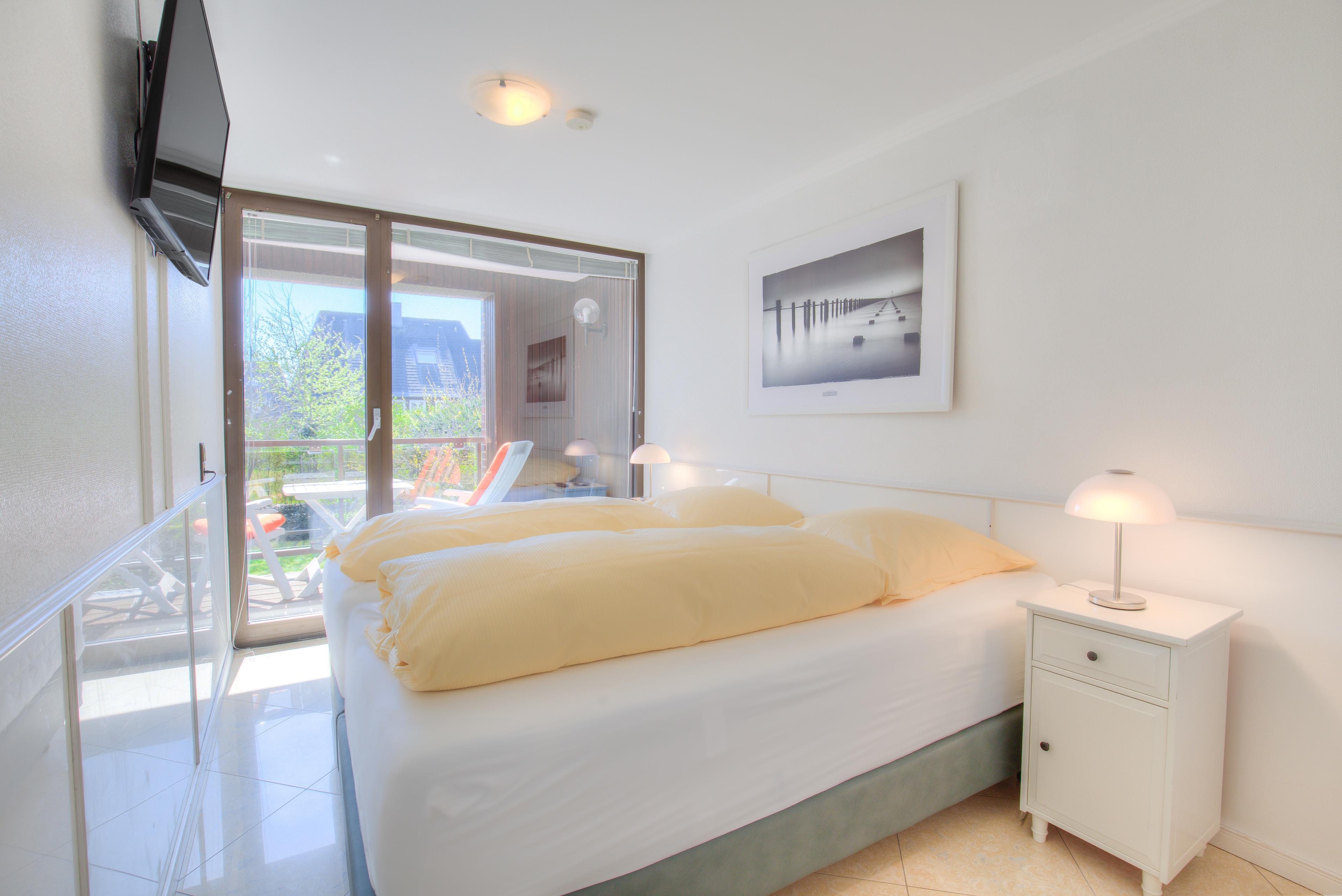 60m² große, strandnahe und lichtdurchflutete 3-Zimmer-Ferienwohnung mit Südbalkon, 2 Schlafzimmern und Duschbad mit Whirlpool.