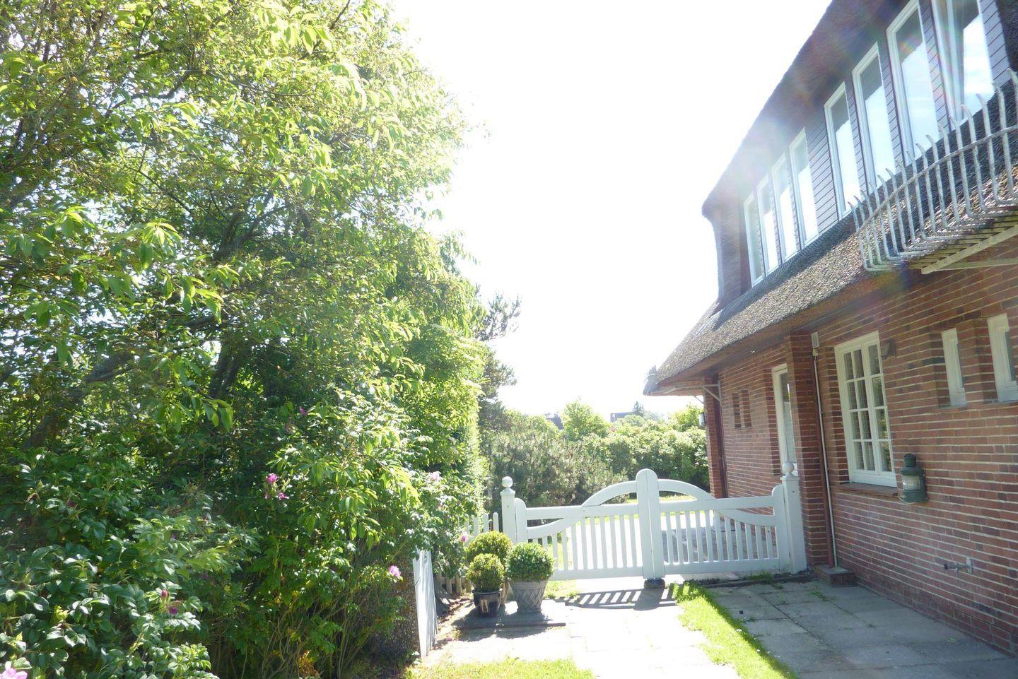 Wohn- und Essbereich: Das helle Wohnzimmer mit gemütlichem Essbereich und bequemen Sofas sorgen für erholsame Stunden beim Lesen oder vor dem großen TV. Der nach Süd-West ausgerichtete Garten mit großer Terrasse, einem Saison-Strandkorb und edler Bestuhlung, ist direkt vom Wohnzimmer zu erreichen.