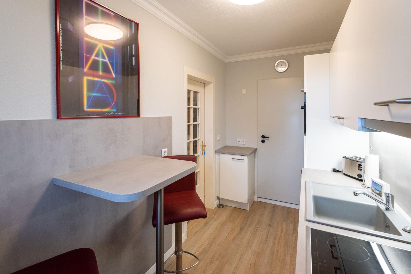 Küche: Moderne Küche mit allem Komfort, einem kleinem Essplatz und Fenster.