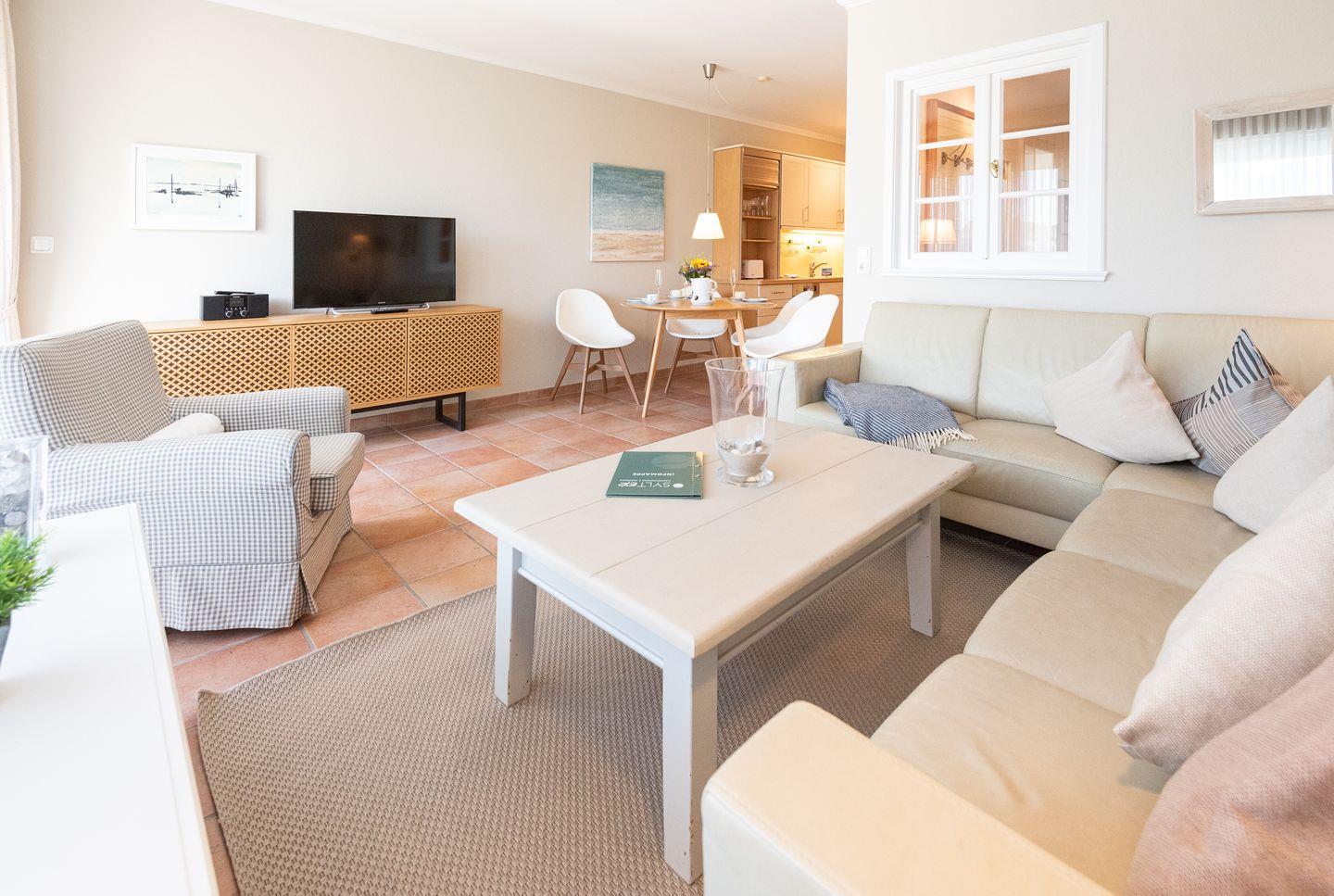 Erdgeschoss Wohnung für bis zu 3 Personen im C-Haus Christine direkt am Strand von Wenningstedt. Das freundlich helle Appartement begrüßt Sie mit dem besonderen Sylter Wohnflair und einer sonnigen Südterrasse.