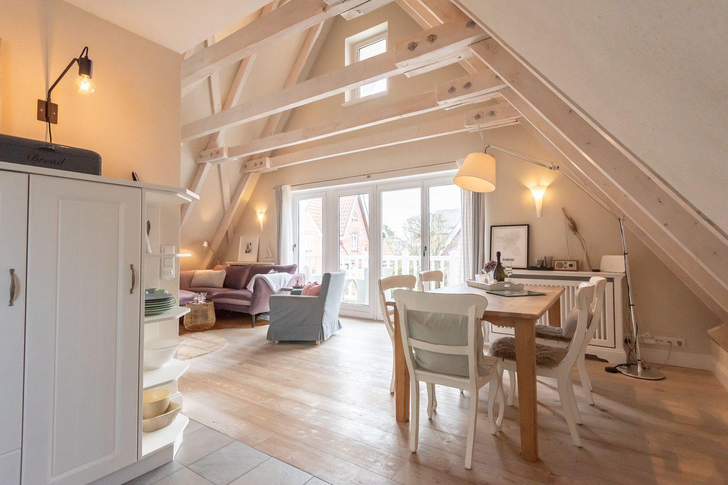 Ihr Domizil ist eine feine 3-Zimmerwohnung mit 85 m² Wohnraum im hellen Dachgeschoss des "Sommerhauses Malmö". Mit bis zu 4 Personen erleben Sie hier Sylturlaub der besonderen Art in herrlichem Ambiente und strandnaher Lage.