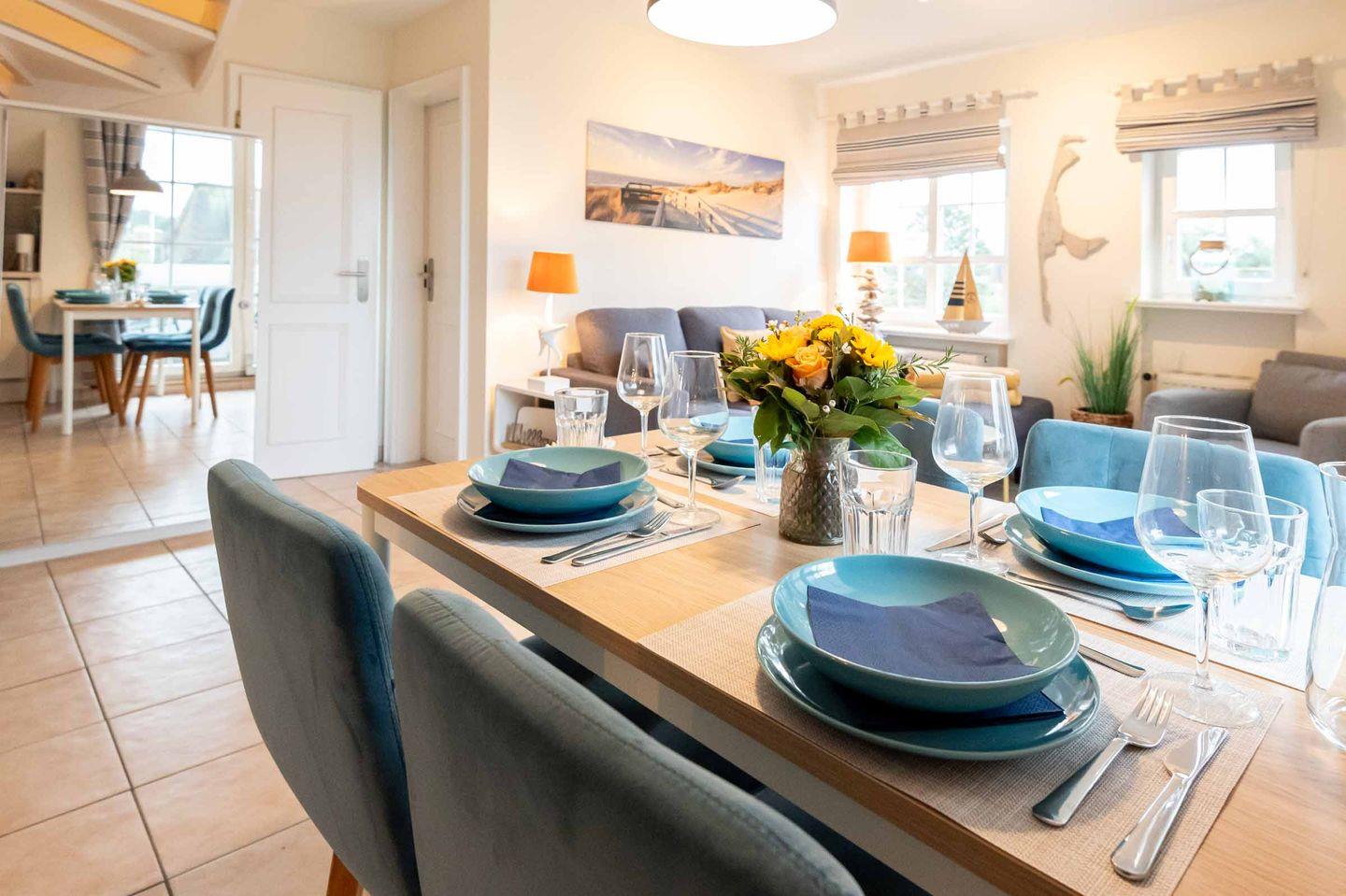 Helle Obergeschoss-Ferienwohnung SyltStern in Wenningstedt mit einer Wohnfläche von ca. 55 m² bietet Platz für bis zu 4 Personen.