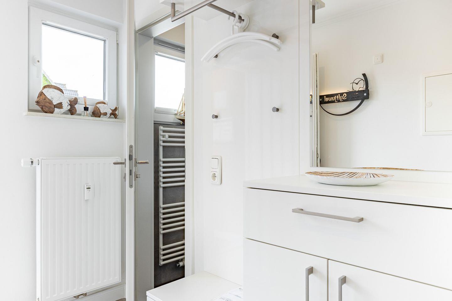 Von diesem Raum gelangen Sie auch auf die schöne, möblierte Terrasse, auf der in den Sommermonaten ein Strandkorb für Sie bereit steht.