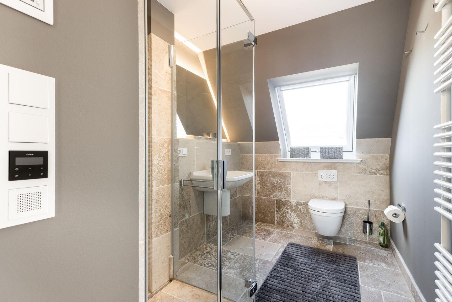 Badezimmer 2: WC, Dusche und Fenster.