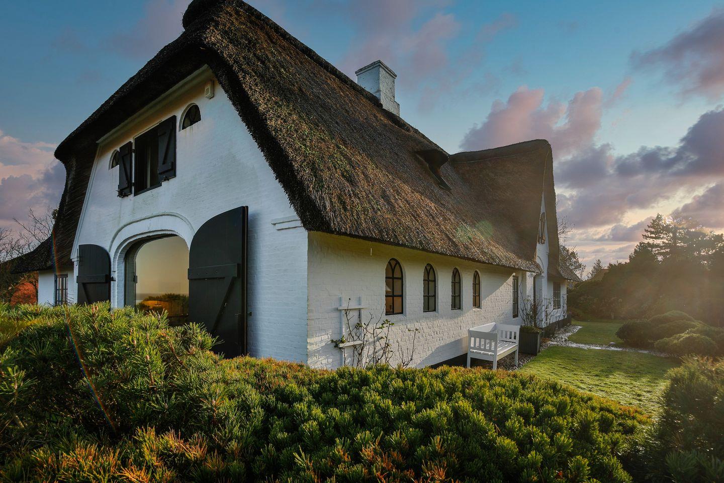 Das freistehendes Reetdachhaus an der Braderuper Heide mit Ausblick über das Wattenmeer bietet bis zu 6 Personen vollen Urlaubskomfort. Drei Etagen auf ca. 280 m² Wohnfläche, eine große Gartenanlage mit 2 Terrasse und einer Sonnenkuhle mit Strandkorb mit Blick Richtung Watt sowie eine finnische Saune ermöglichen einen fantastischen Urlaub in Braderup.