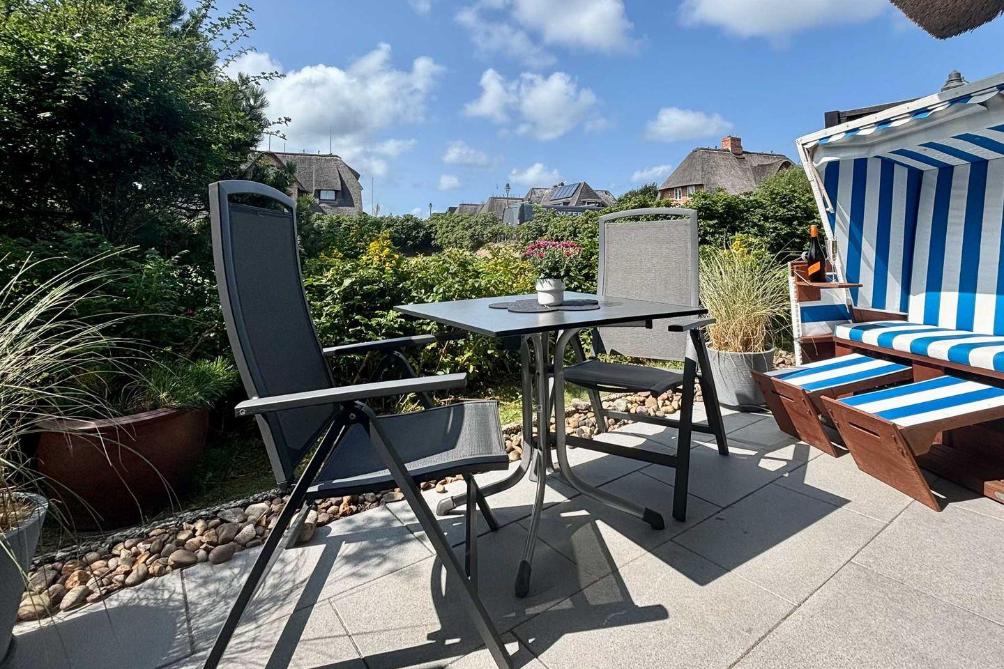 Frisch renovierte Zweizimmerwohnung unter Reet in zentraler und strandnaher Lage von Wenningstedt. Die helle Erdgeschosswohnung liegt direkt gegenüber des idyllischen Dorfteiches, bietet Platz für bis zu 3 Personen auf ca. 50 m² und ist somit das ideale Feriendomizil für Paare oder kleine Familien mit einem Kind.