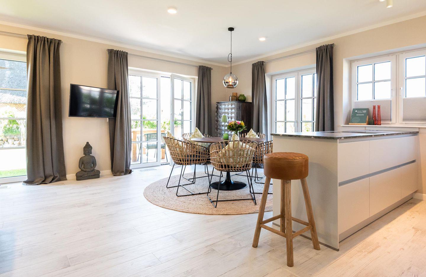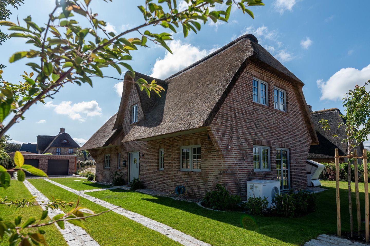 Moderne und nachhaltige Haushälfte unter Reet mit ca. 102 m² bietet mit Garten, Süd-Terrasse, eigener Sauna und ruhiger Lage in Wenningstedt helle und großzügige Wohnfläche für 4 Personen.