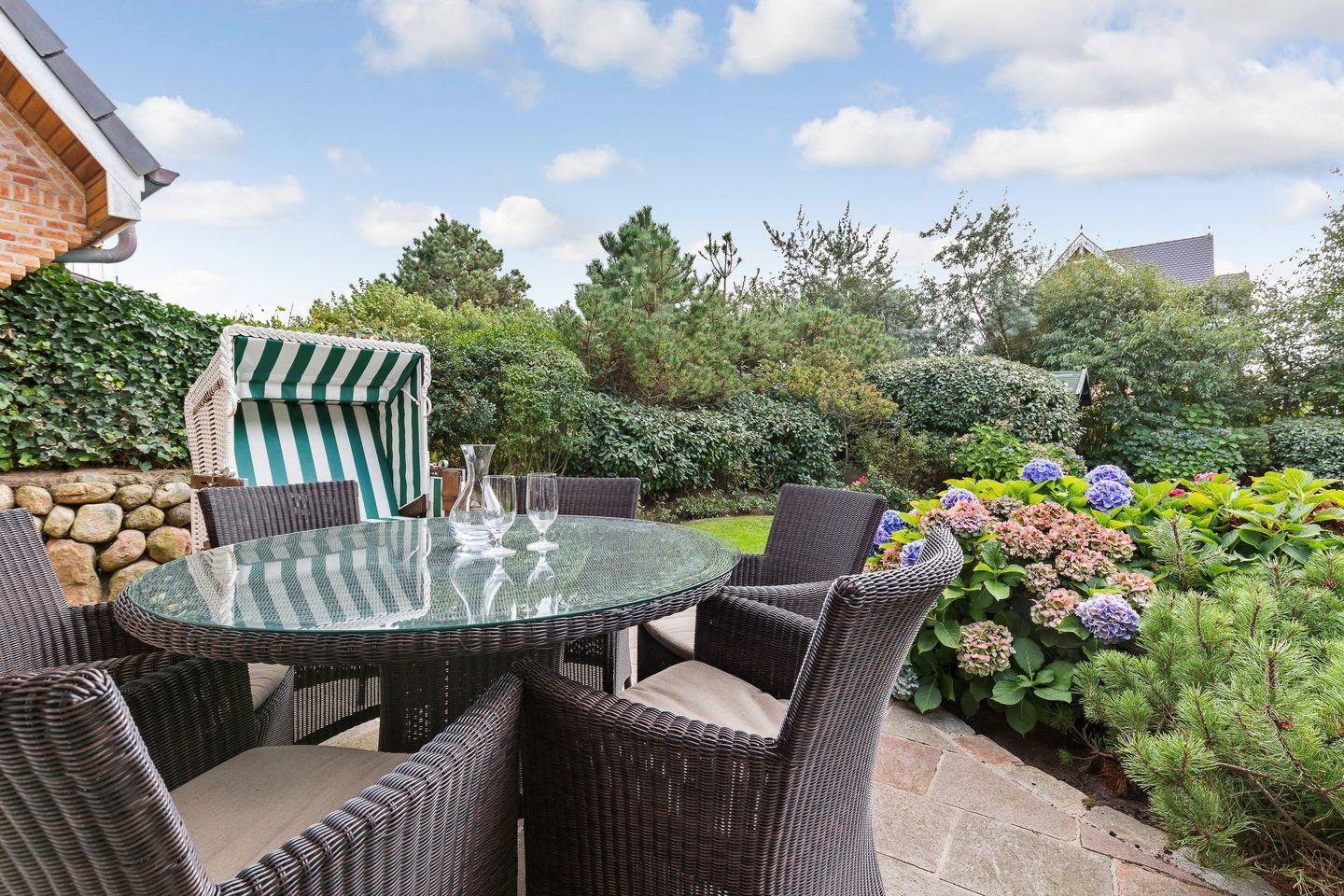 Das „Klingler`s Hüs“ befindet sich in Bestlage zwischen Dünen und Dorfteich. Das Appartement 1 bietet Ihnen ein traumhaftes Südgrundstück mit eigenem Garten und Gartenhäuschen. Hier können Sie laue Sommerabende genießen oder Ihr Urlaubsfrühstück draußen zu sich nehmen.