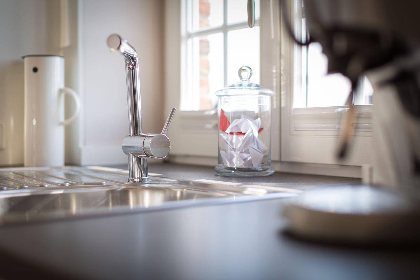 Geschirrspül-, herkömmliche Kaffee- sowie Senseo-Kaffeemaschine gehören ebenso zur Ausstattung wie ein Dunstabzug mit Abluft.