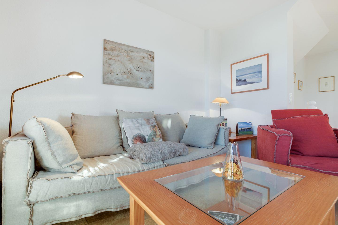 Erdgeschoss: Geschmackvoll und hochwertige möblierter Wohnraum mit Flatscreen-Kabel-TV, Hifi-Anlage und Telefon. Luxuriöse Küche mit Geschirrspüler, Mikrowellen-Backofen-Kombination. Gäste-WC. Sonnige West-Terrasse mit Gartenmöbeln und Strandkorb.