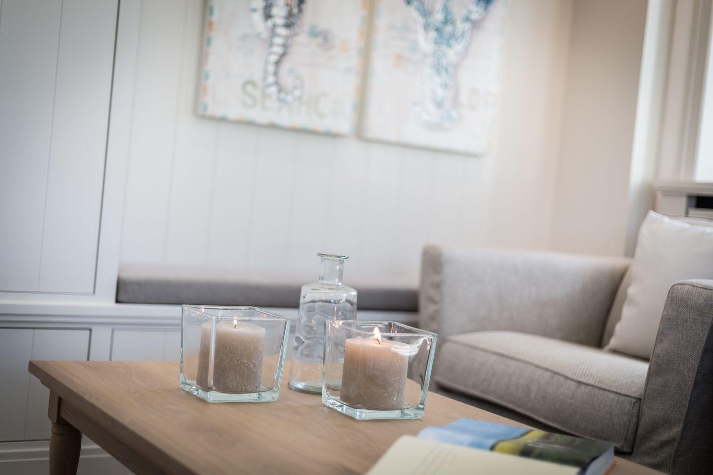 EG: Wohnbereich mit Flatscreen TV, Soundbar mit Bluetooth, Gaskamin, W-LAN, separate Küche mit Backofen, Induktionsherd, Geschirrspülmaschine, Nespresso Maschine, Gäste-WC, große Terrassen mit Strandkorb