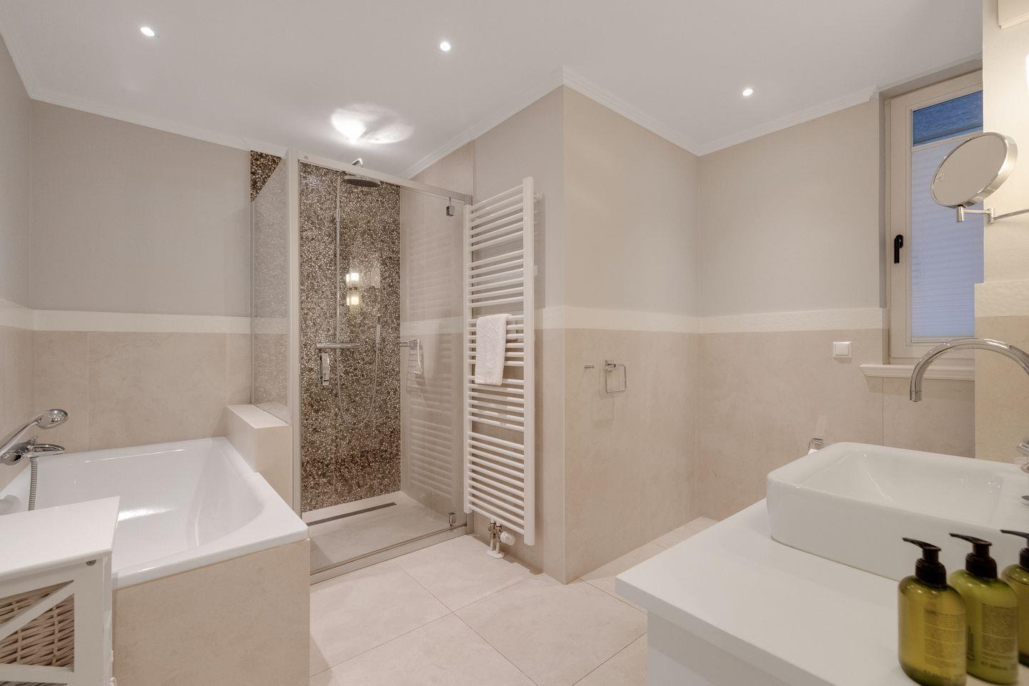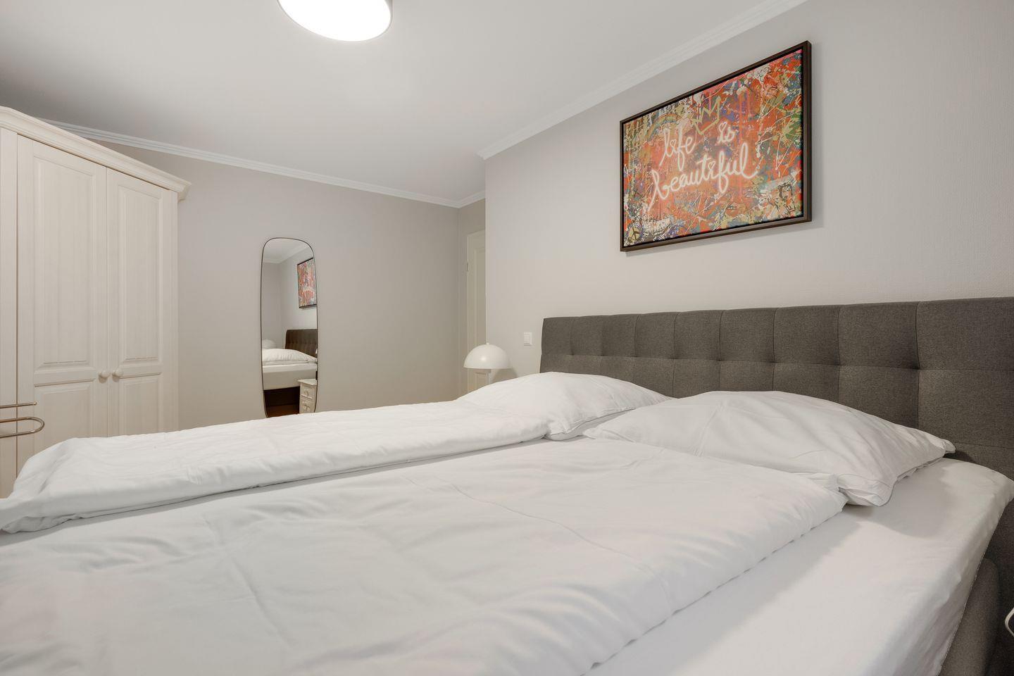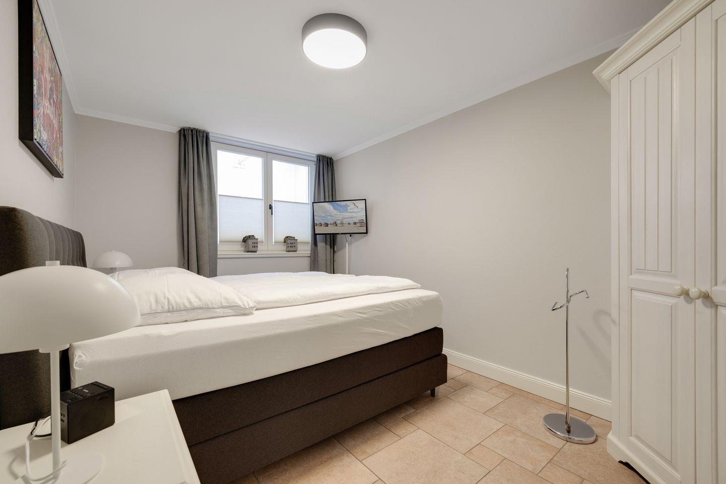 OG: Sehr schön gestalteter Masterbedroom mit Boxspringbett (180x200cm), Flat-TV, viel Schrankplatz und Mini-Balkon (Austritt). Das benachbarte Schlafzimmer ist mit seinen zwei getrennten Betten (2x100x200cm), liebevoller Deko und Flat-TV ideal für Ihre Kids. Wohlfühlbad mit Dusche, Waschtisch und WC.