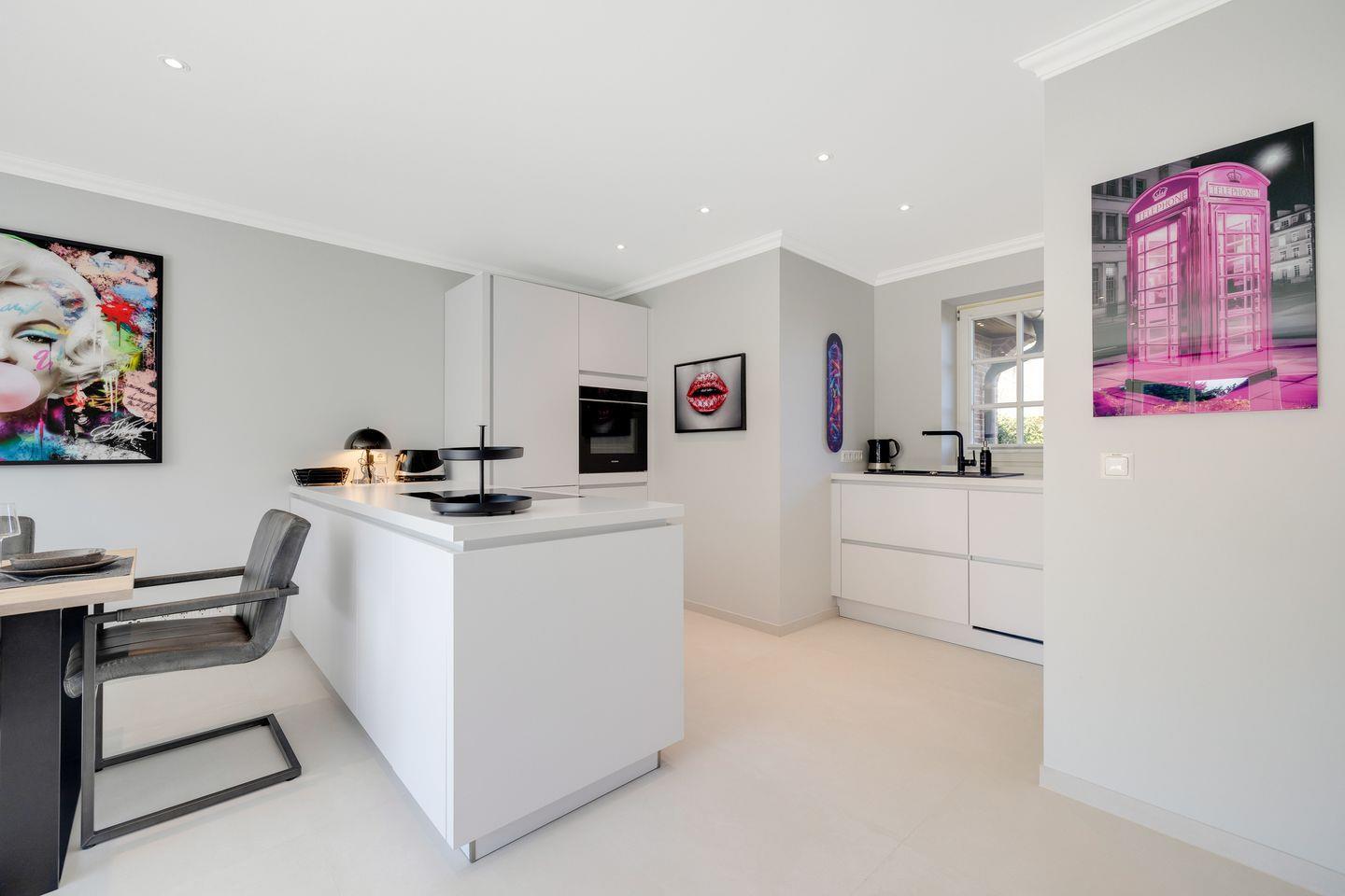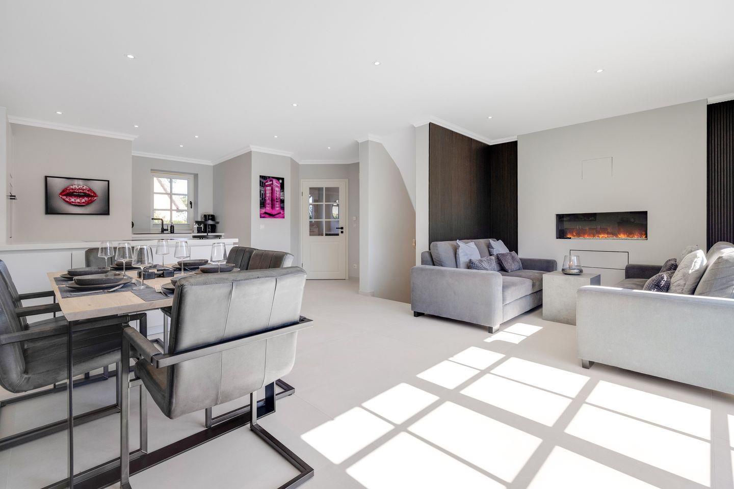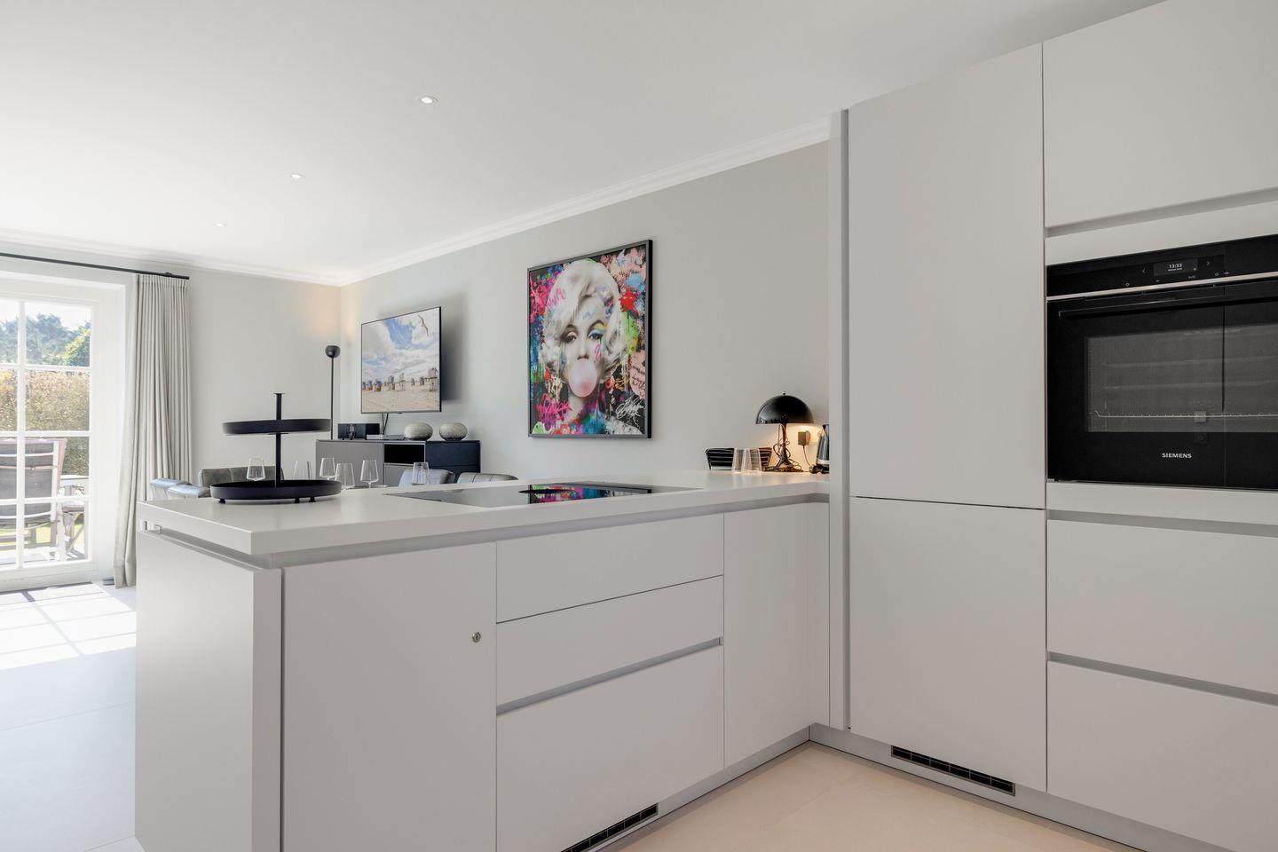 Freuen Sie sich auf wunderschöne Farben und sehr wertige, geschmackvolle Dekorationen. In Ihrem luxuriösen Wohnbereich wurde sogar ein eindrucksvoller Erdgaskamin hinter einer stylishen Glasfront prominent im Raume integriert. Dieser lässt sich ganz bequem per Fernbedienung an und ausschalten. Ihre Bäder sind übrigens kleine Wellnesswelten. Eine Sauna darf auch nicht fehlen. Und das alles in bester, zurückgezogener Lage am Dorfteich, mit eigenem, sonnigem Süd-Gärtchen und XXL-Terrasse. Welcome !