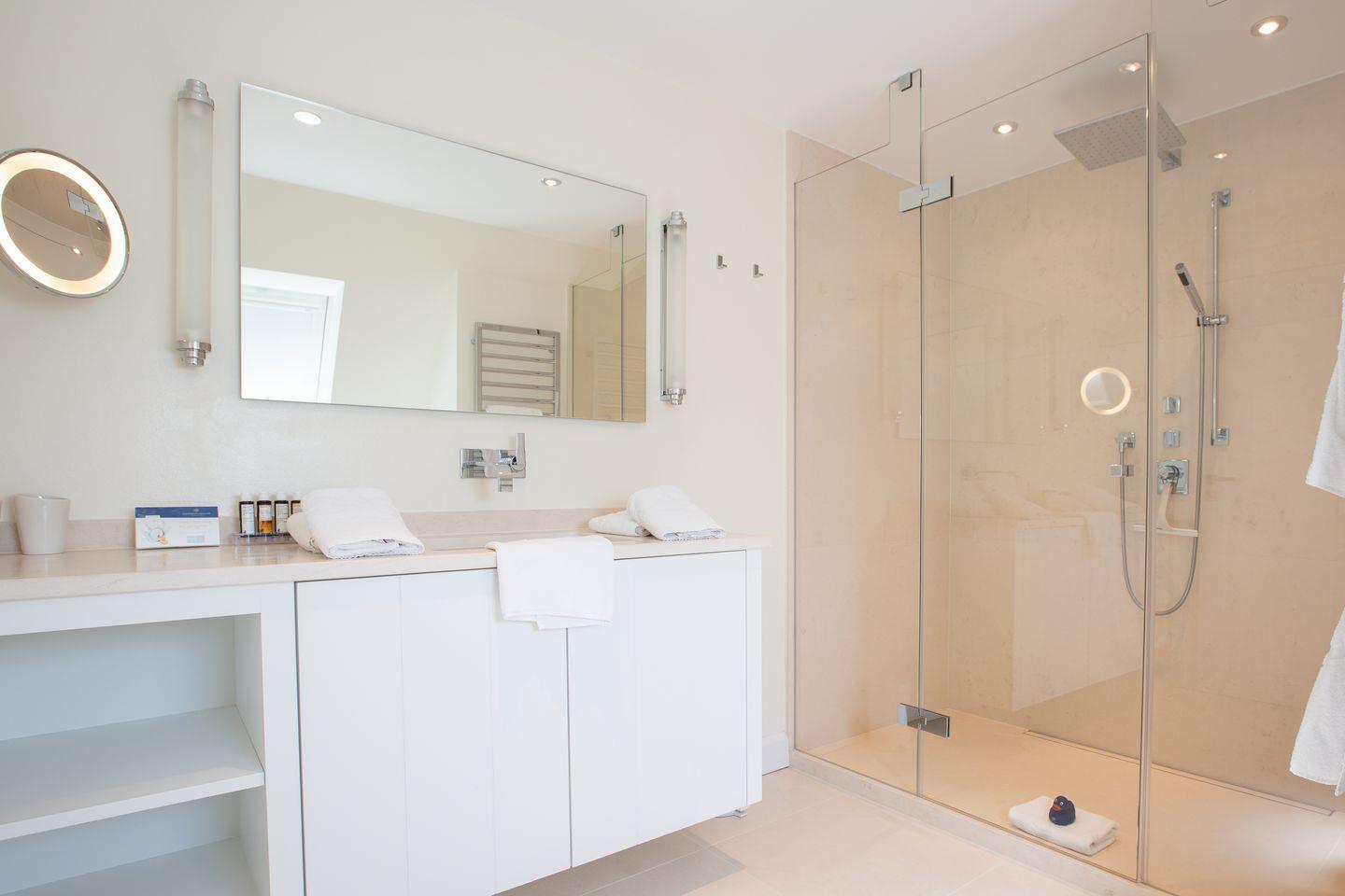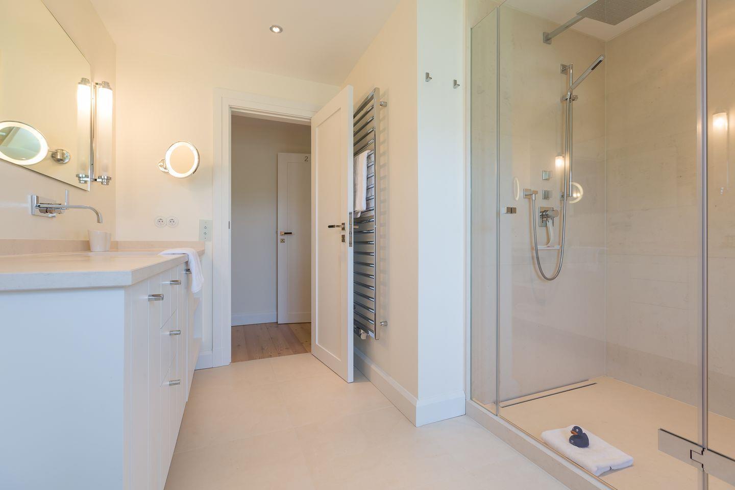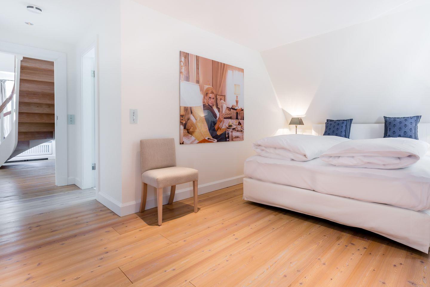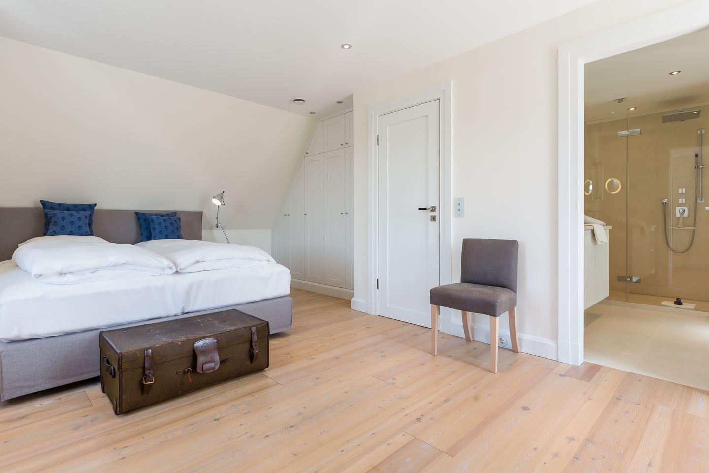 Im Obergeschoss stehen Ihnen gleich zwei Masterbedrooms zur Verfügung (ca. 180 x 200 cm). Der eine bietet Ihnen einen zauberhaften Ausblick auf die Wenningstedter Dünen, mit Luxus Bad En-Suite. Der andere wunderschöne Schlafraum lässt Sie sogar auf einen kleinen Balkon austreten und den Wenningstedter Dorfteich erblicken. Ein weiteres, beeindruckendes Bad mit XXL-Dusche finden Sie gleich nebenan.