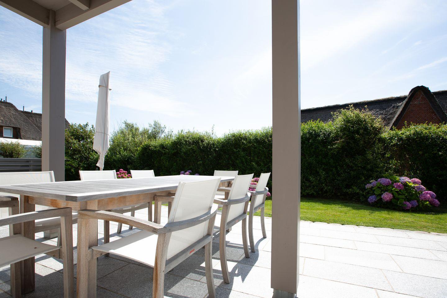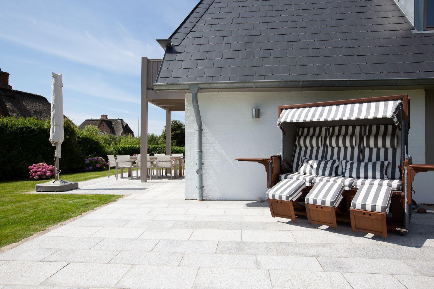 Apropos Traum: Ihr umlaufendes, sehr schön angelegtes Grundstück muss man einfach genießen. Sie können nach Belieben mit der Sonne "mitwandern". Ungestört Frühstücken im geschützten östlichen Bereich, Sonne pur auf Ihrer Terrasse tanken, oder aber am Abend die Sonne langsam hinter der Dünenkette im Westen untergehen sehen. Wertiges Gartenmobiliar inklusive zweier Luxus-Strandkörbe verstehen sich von selbst.
