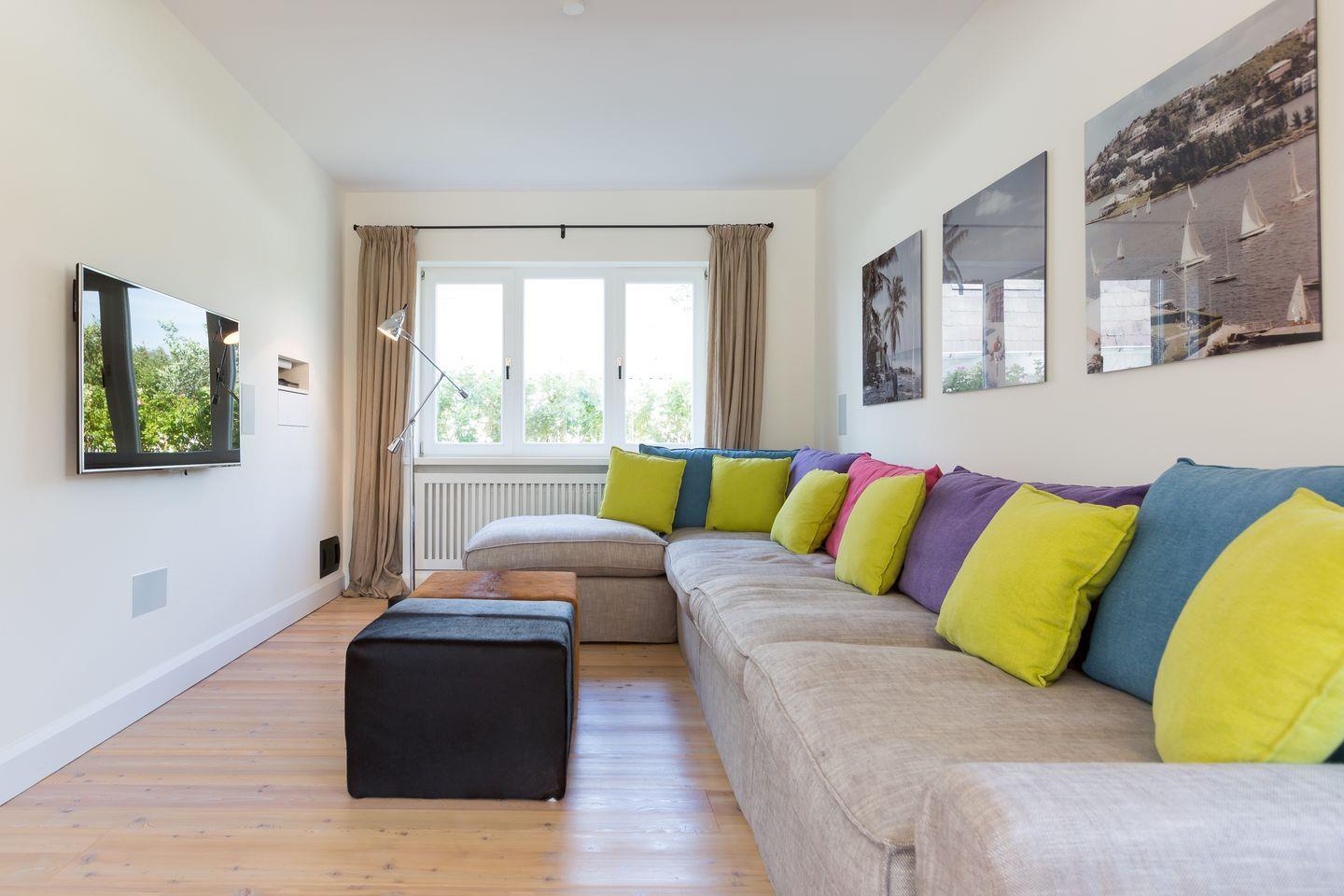 Der Wohnbereich Ihres Domizils ist für Sylter Verhältnisse verschwenderisch opulent. Der Grundriss wurde geschickt von Architektenhand gezeichnet und verströmt Großzügigkeit pur. So gehen TV-, Couch- und Essbereich ineinander über, dennoch erscheint jeder Bereich für sich. Feinstes Entertainment versteht sich hier ebenso von selbst, wie ein per Fernbedienung jederzeit an- und ausschaltbarer sowie regulierbarer Gas-Kamin. Perfekte Rahmenbedingungen für einen kuscheligen Rotweinabend ! Für ein tolles Sounderlebnis sorgt eine SONOS Anlage.