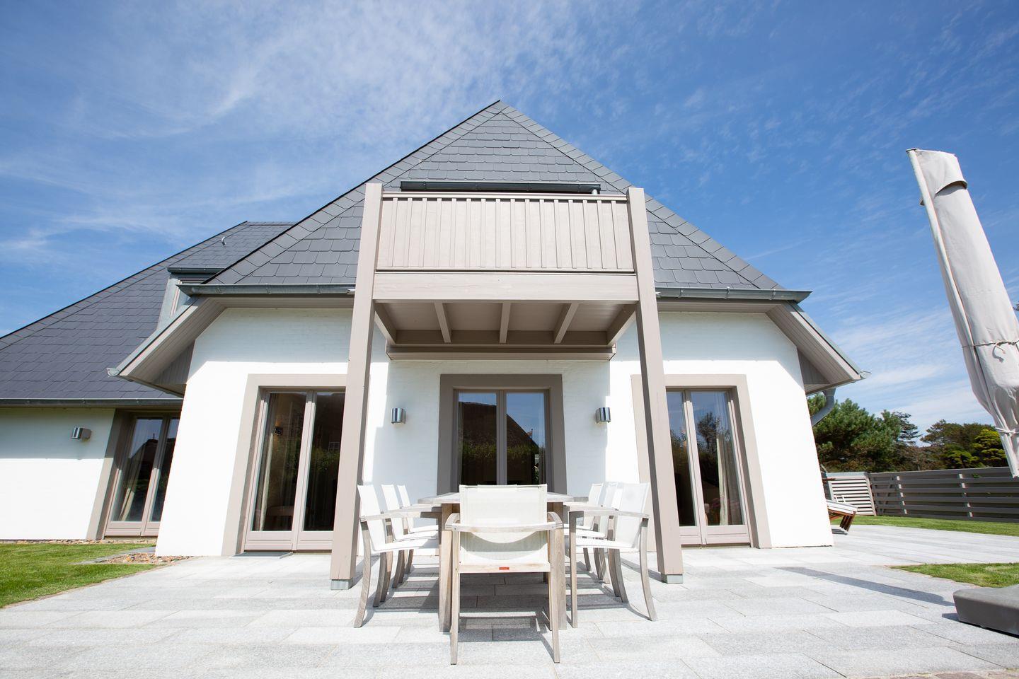 Freistehendes Luxus-Einzelhaus zwischen Wenningstedter Dorfteich und Dünen. Ca. 325 qm Nutzfläche (inkl. separatem Wellnessbereich) erwarten bis zu 8 glückliche Gäste im Erd-, Unter-, Ober- und Dachgeschoss.