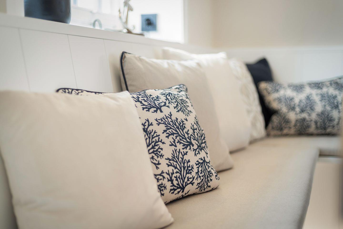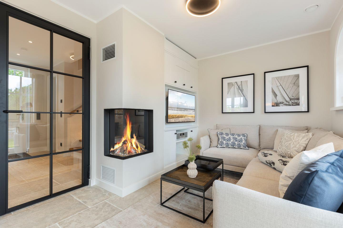 Erdgeschoss: Wohnbereich mit gemütlicher Sitzecke und großer Couch die sich an den Lehnen noch vergrößern lässt, Gaskamin sowie einem Smart TV und einer Musikanlage. Die offene im Wohnraum integrierte Küche mit Backofen und integrierter Mikrowelle, Induktionsherd, Kühl- und Gefrierkombination, Geschirrspülmaschine, Quooker und Weinschrank lässt keine Wünsche offen. Zusätzlich im Erdgeschoss befindet sich ein Gäste-WC. Die Gartenterrasse mit Gartenmöbeln und Strandkorb lädt zum Verweilen ein und Sie können den ganzen Tag die Sonne genießen.