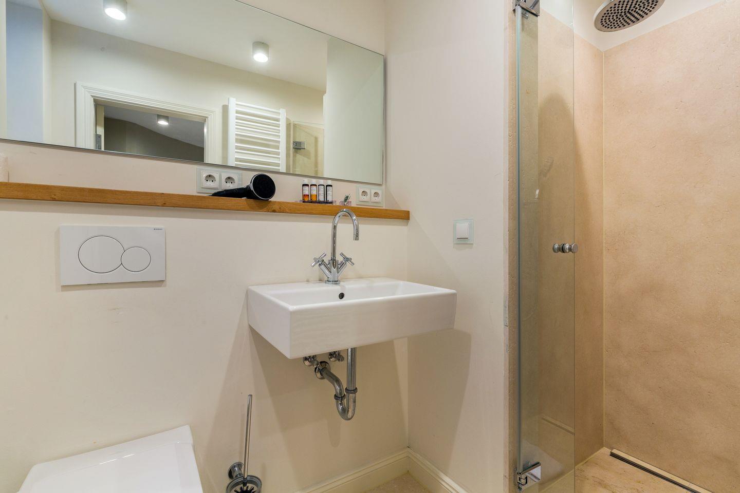 Ebenfalls steht Ihnen eine Sauna mit Wellnessdusche zur Verfügung. Weiterer Schrankplatz findet sich im Flurbereich.