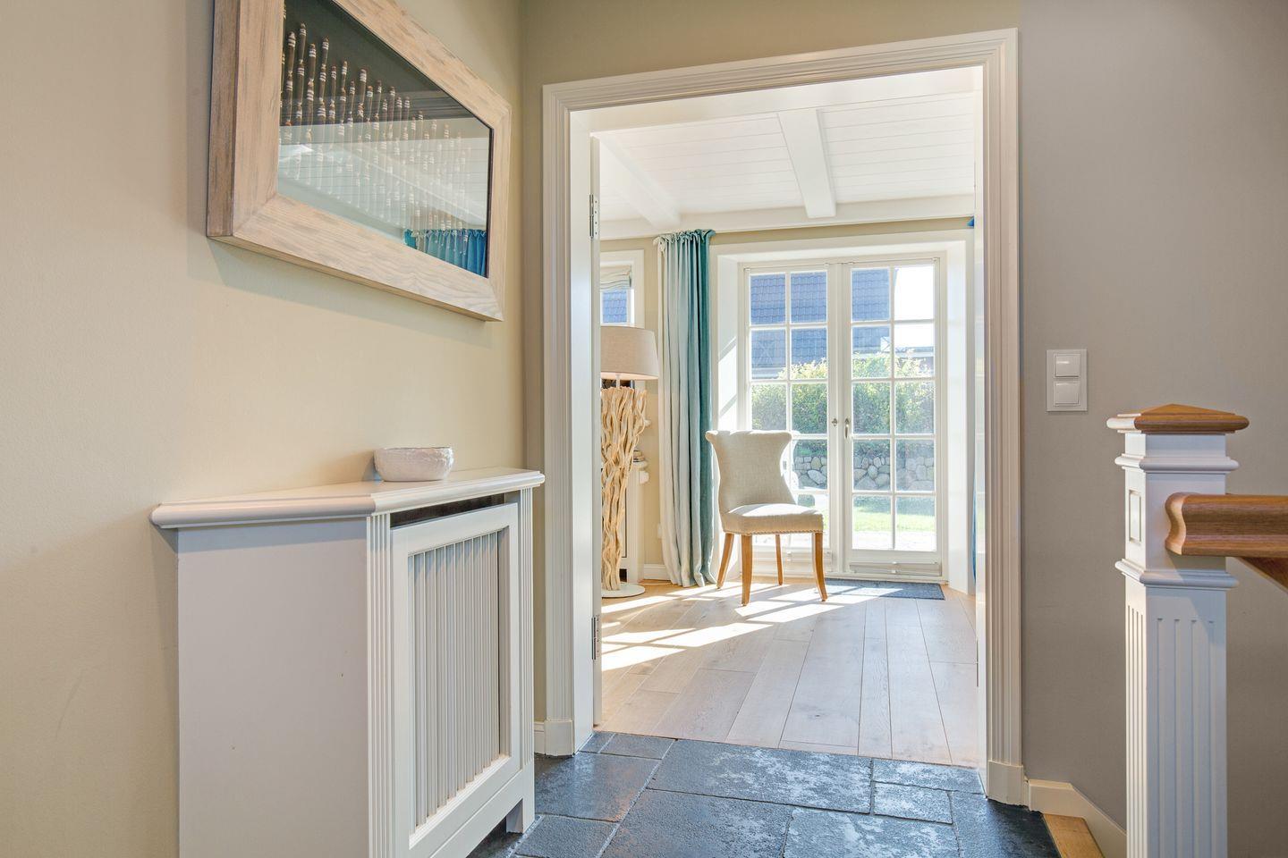 Das freistehende "Cliffhouse" bietet mit seinen üppigen 200 qm Nutzfläche bis zu acht Personen viel Raum, die Sylter Urlaubsträume genau hier zu verwirklichen. Das hübsche Friesenhaus ist ringsherum von bepflanzten Friesenwällen eingerahmt und von Rasenflächen umgeben. Ihre Open-Air Situation ist luxuriös: Mit einer Südterrasse (Wohnzimmer) sowie einer Ostterrasse , die über eine „Klöntür“ vom Küchenbereich erreichbar ist , stehen Ihnen im Cliffhouse gleich zwei große Terrassenbereiche zur Verfügung, Sylt Open Air ausgiebig zu genießen und dem nahen Meeresrauschen zu lauschen.