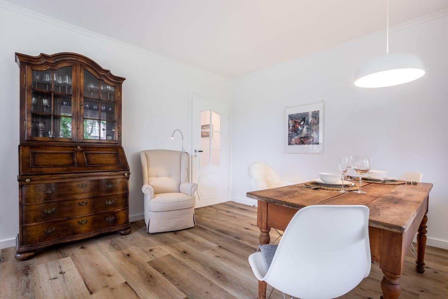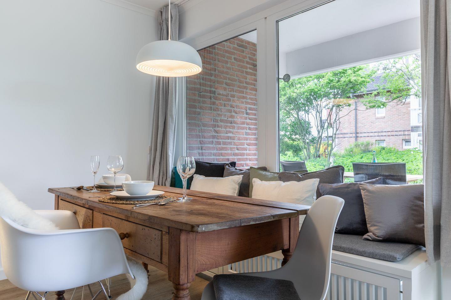 Machen Sie Urlaub mit einem wunderschönen Ausblick auf eines der schönsten Fleckchen der Insel – dem Wenningstedter Dorfteich. Die Kombination aus klassischen und modernen Möbeln macht den besonderen Charme dieser hochwertig neu gestylten Wohnung aus.