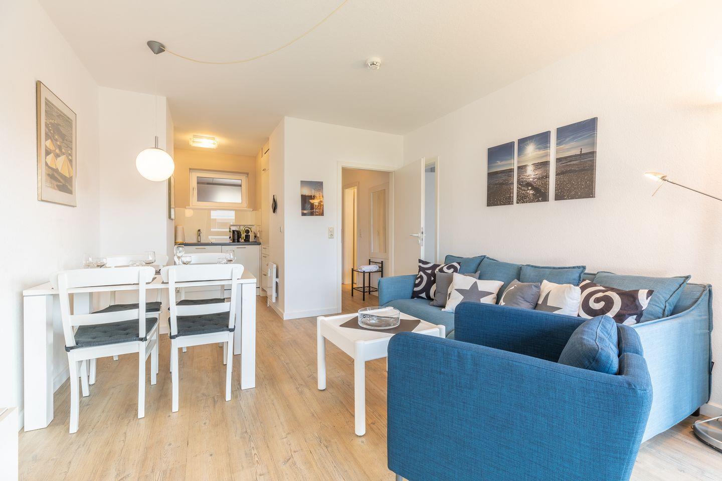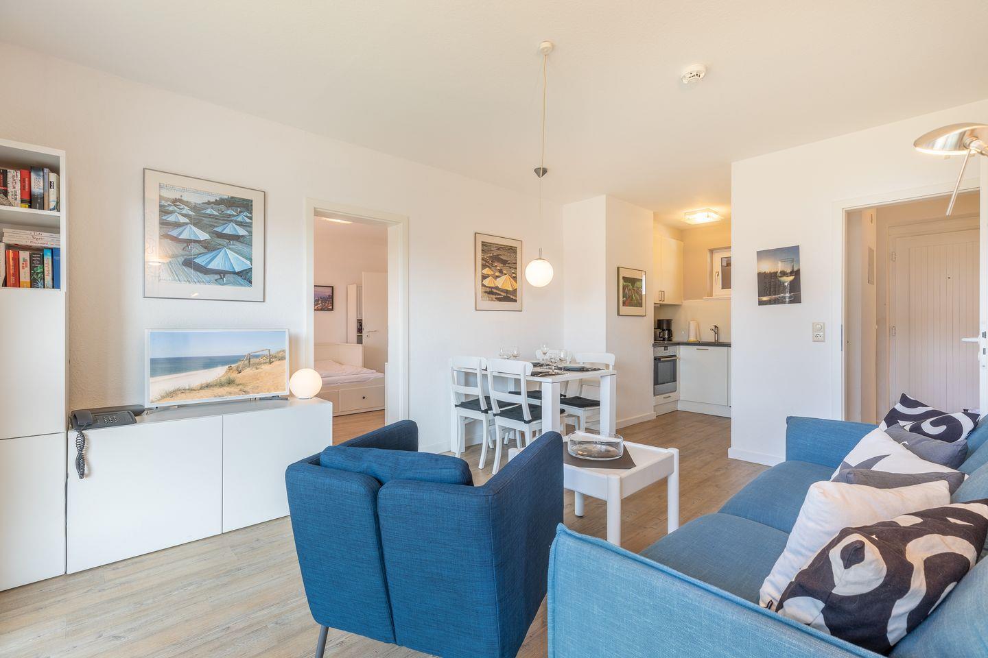 Entdecken Sie die stilvolle Ferienwohnung Fortuna, App. 14, in Wenningstedt auf Sylt. Die 70 m² Nutzfläche große Unterkunft bietet Platz für bis zu vier Personen und wartet mit zwei komfortablen Schlafzimmern, einem modernen Badezimmer sowie einer offenen Küche auf. Genießen Sie gemütliche Abende im Wohnzimmer oder auf dem Balkon mit Blick ins Grüne. Ideal für Familien und Paare, die einen unvergesslichen Urlaub verbringen möchten!