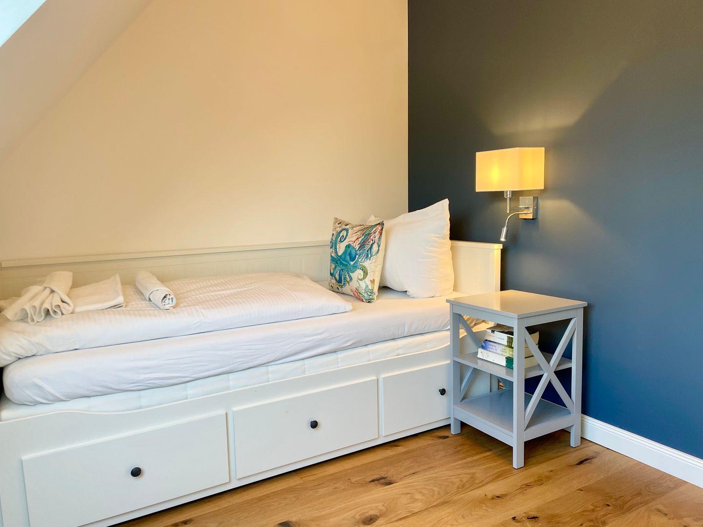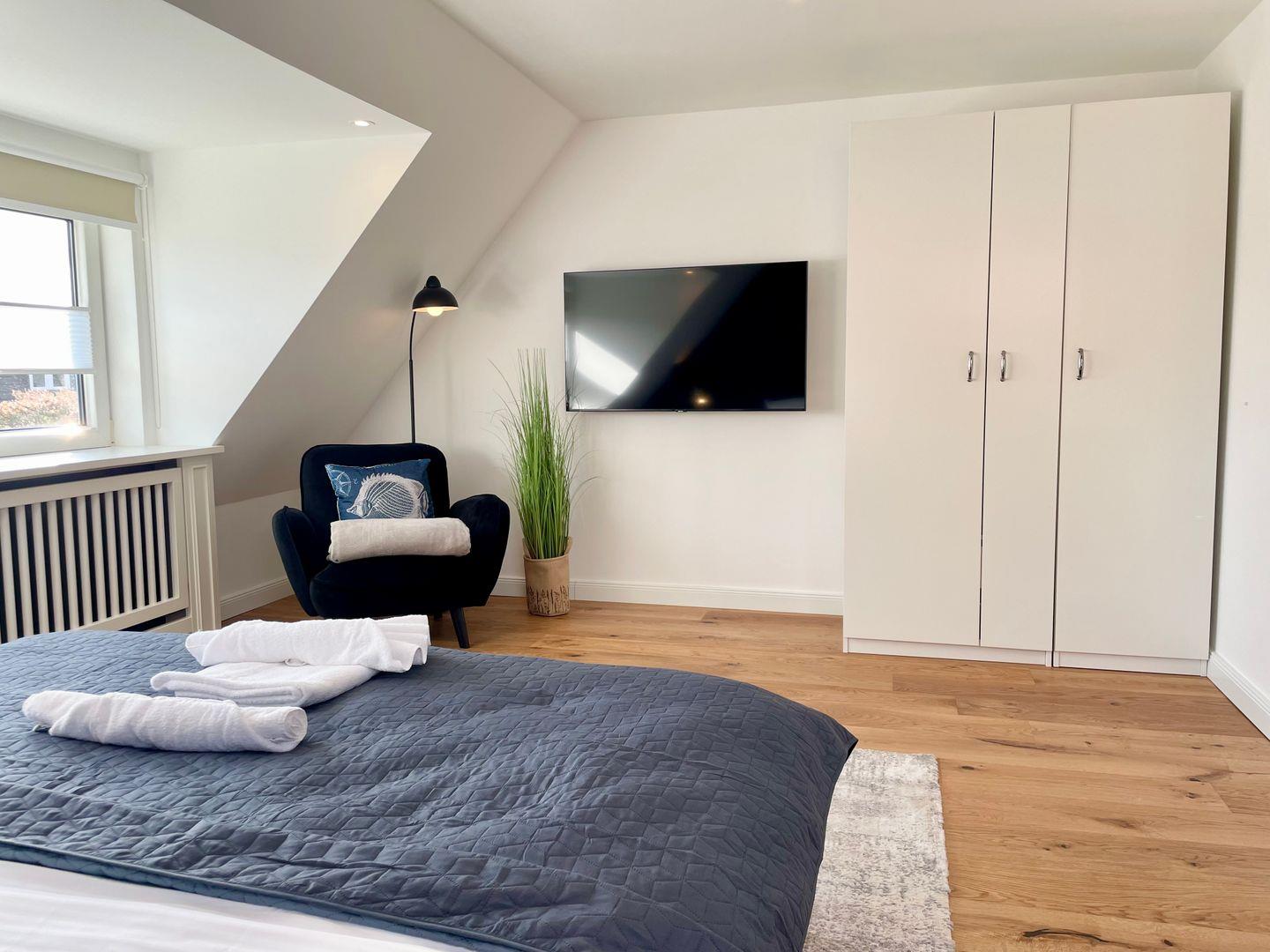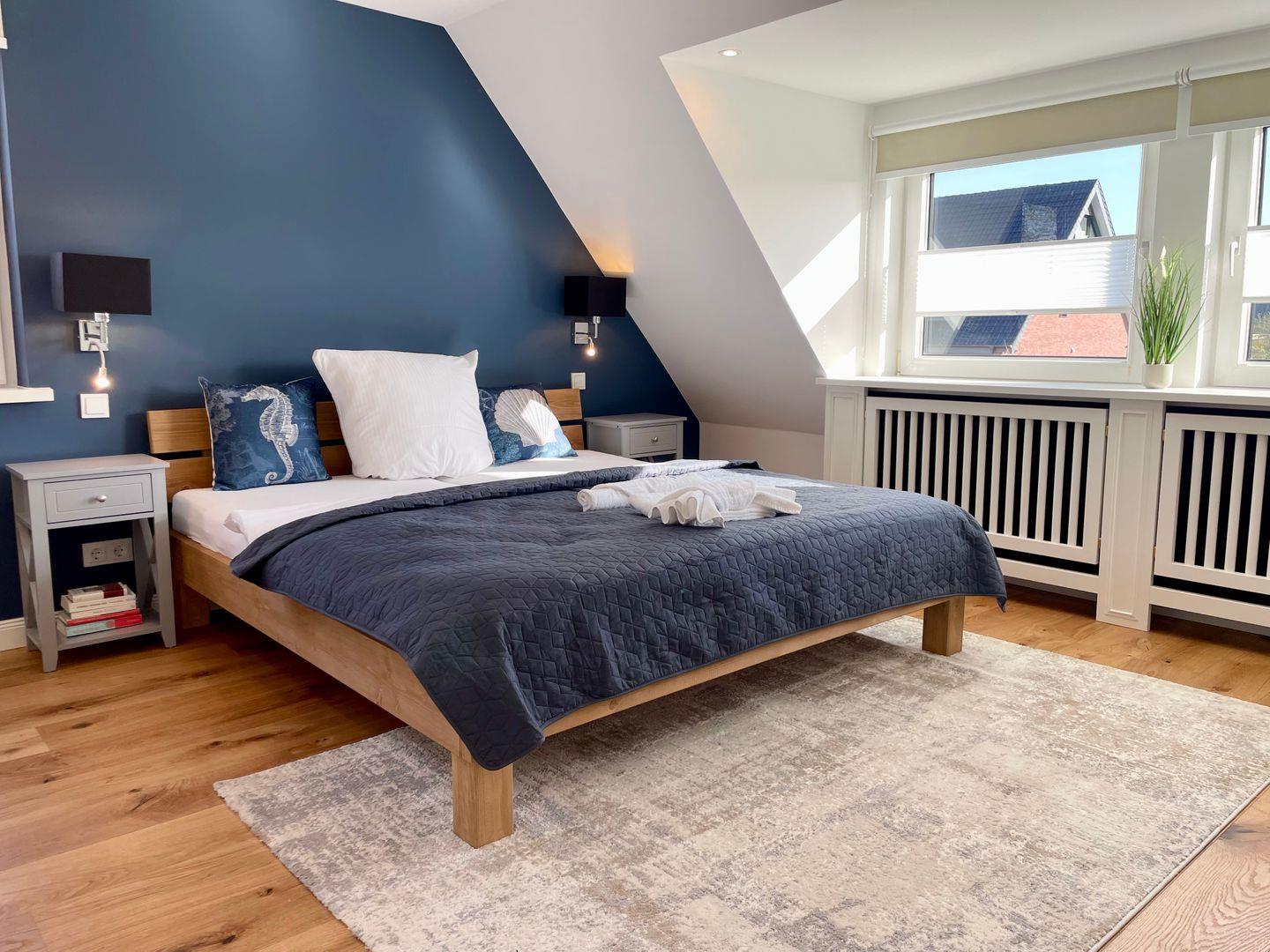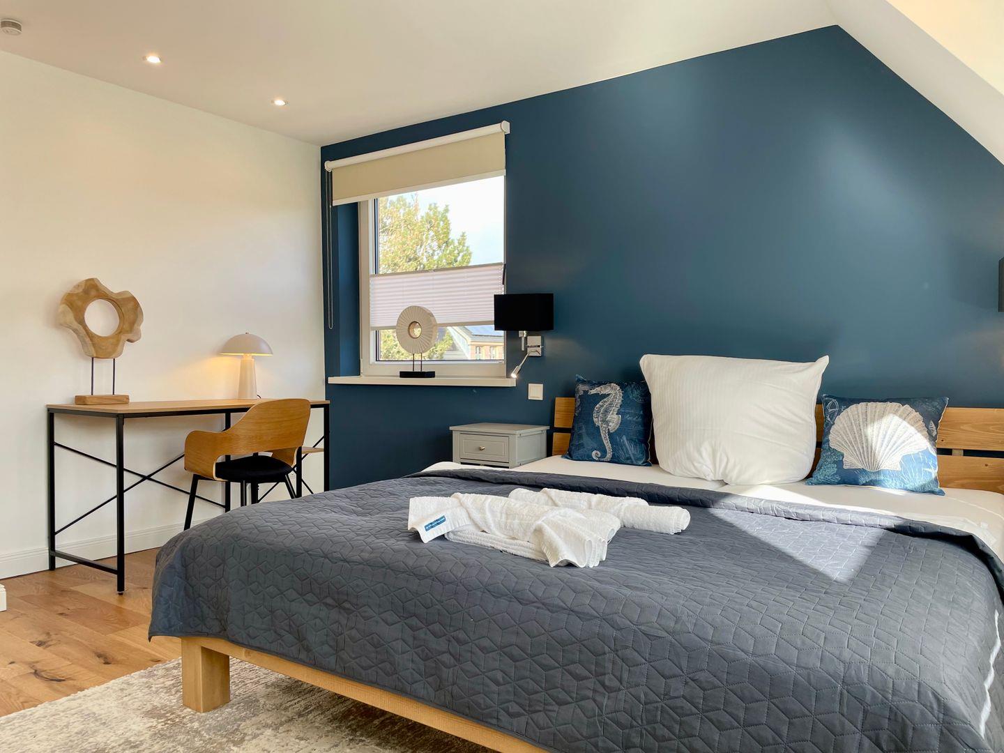 Das kernsanierte und modern renovierte ca. 100 m² große Reihenendhaus für bis zu 6 Personen befindet sich in einer ruhigen Lage von Wenningstedt und bietet einen guten Ausgangspunkt um sowohl den Strand als auch die Stadt fußläufig gut zu erreichen. Das Erdgeschoss bietet Ihnen einen Wohn- und Essbereich mit toller Fensterfront und Blick in den eigenen Garten. Die helle, separate Küche samt Geschirrspüler ist voll ausgestattet. Das moderne Duschbad ist mit einer bodentiefen Dusche ausgestattet. Im Obergeschoss erwartet Sie ein großzügiges Doppelschlafzimmer mit einem Schreibtisch. Das andere Schlafzimmer auf dieser Etage bietet ein Einzelbett, welches sich bei Bedarf zu einem Doppelbett (160 cm) ausziehen lässt. Das Duschbad ist ebenfalls mit einer bodentiefen Dusche ausgestattet. Im Dachgeschoss erwartet Sie ein weiteres großzügiges Doppelschlafzimmer. Alle Schlafräume sowie das Wohnzimmer sind mit Smart-TVs ausgestattet. Nutzen Sie gerne die schöne Südterrasse mit angrenzendem Garten und Strandkorb (in der Saison). WLAN sowie ein zugehöriger PKW-Stellplatz sind vorhanden. Eine Waschmaschine und ein Trockner stehen Ihnen ebenfalls zur Verfügung. Haustiere sind erlaubt.