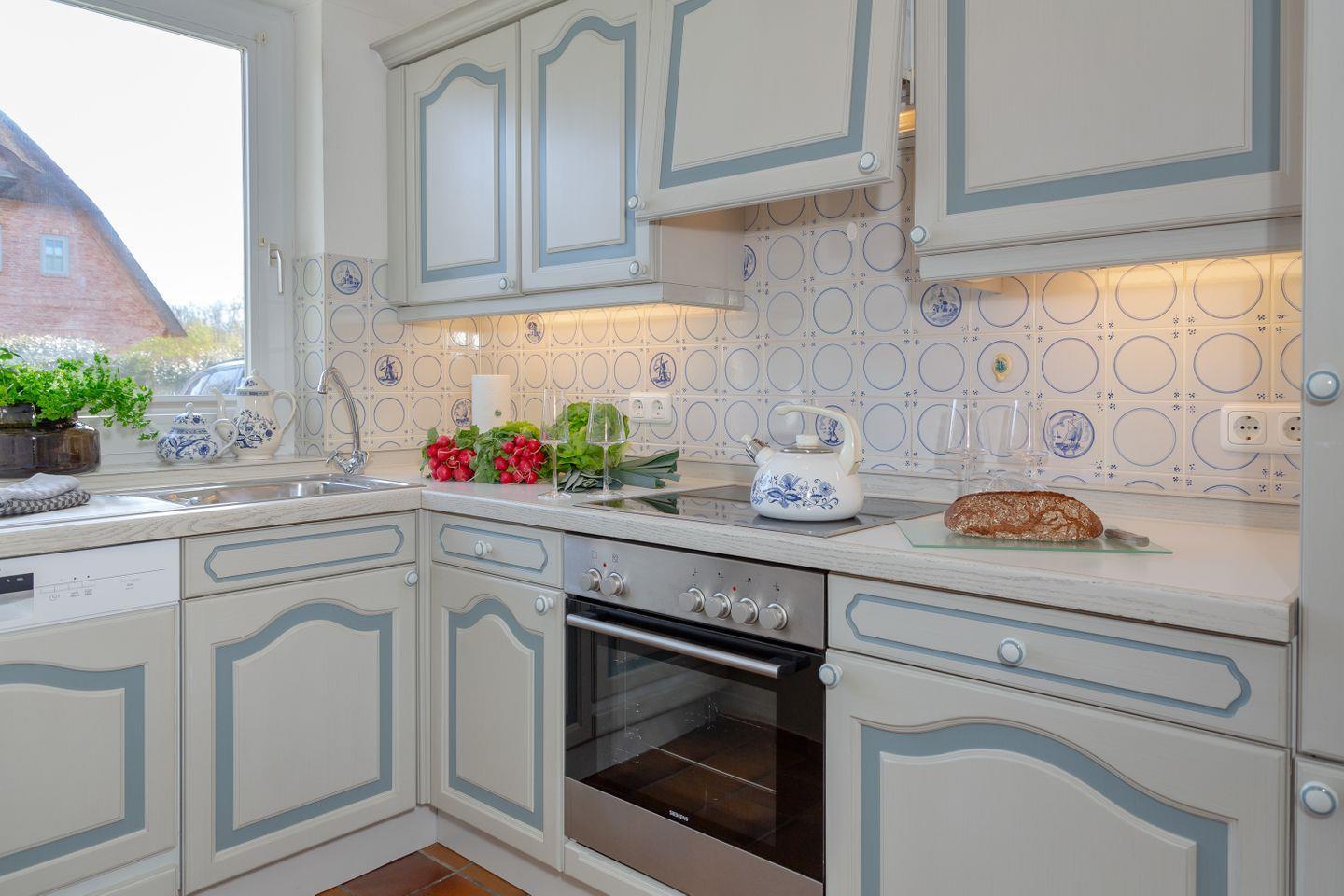 Der liebevoll eingerichtete Wohnbereich lädt mit einem komfortablen Schrankbett zu entspannten Stunden ein. Zusätzlich sorgt ein Gäste-WC für angenehmen Komfort und Privatsphäre. Die separate, moderne Küche ist vollständig ausgestattet und macht die Selbstversorgung im Urlaub zum Vergnügen.