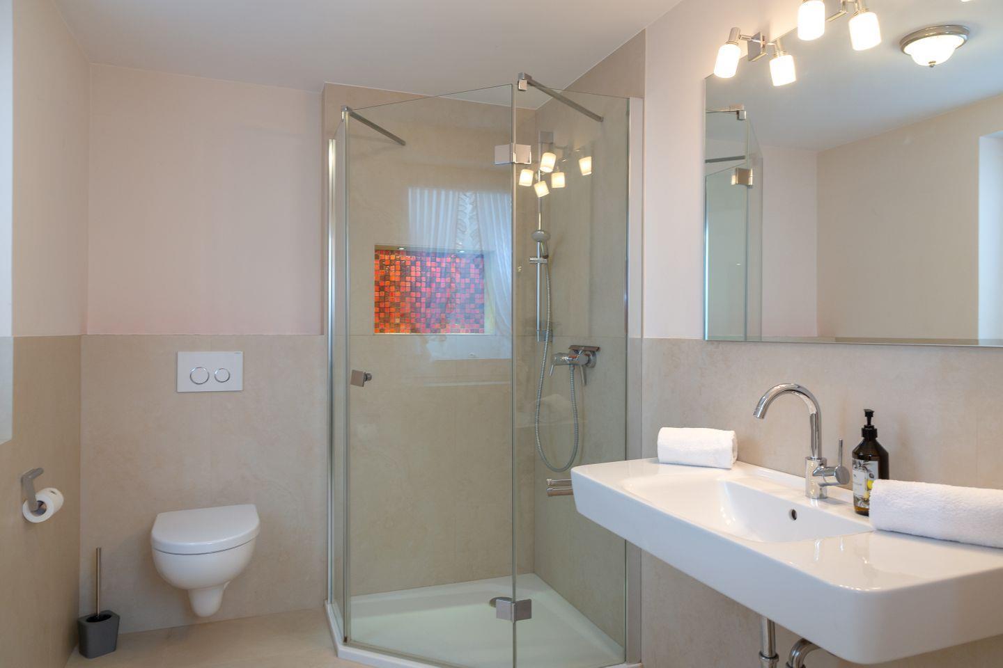 Im Souterrain erwartet Sie ein gemütliches Schlafzimmer mit einem komfortablen Doppelbett für erholsame Nächte sowie ein modernes Badezimmer mit Dusche. Eine Waschmaschine steht Ihnen ebenfalls zur Verfügung.