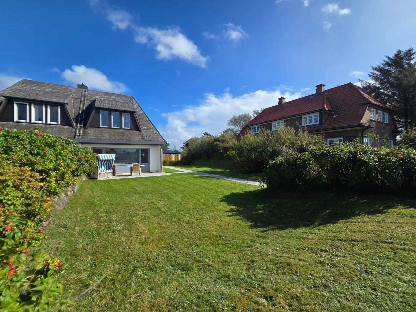 Die Terrasse der Ferienwohnung ist ein besonderes Highlight. Sie ist großzügig, möbliert und lädt zu entspannten Stunden im Freien ein. Beginnen Sie den Tag mit einem Frühstück an der frischen Nordseeluft oder genießen Sie den Abend bei einem Glas Wein, während Sie den Blick auf die Dünen schweifen lassen. Ein Strandkorb sorgt für zusätzliches Insel-Feeling und macht die Terrasse zu einem perfekten Rückzugsort für entspannte Stunden.
