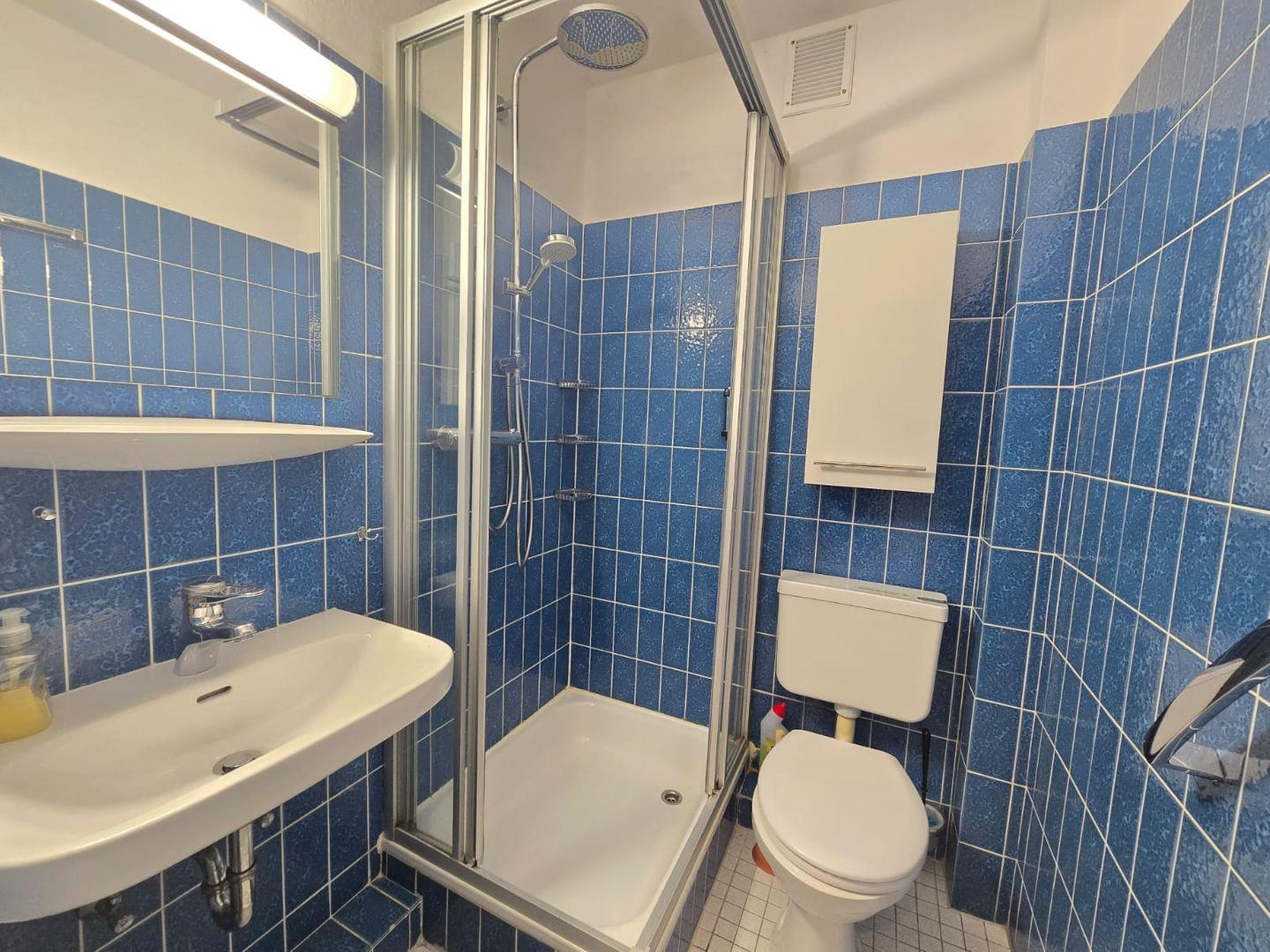 Das Schlafzimmer ist ruhig gelegen und liebevoll eingerichtet. Zwei komfortable Einzelbetten sorgen für erholsame Nächte, während stilvolle Details und hochwertige Textilien für ein Wohlfühlambiente sorgen. Eine weitere Schlafmöglichkeit bietet das hochwertige Schrankbett im Wohnzimmer, das sich diskret in den Raum integrieren lässt. Das Badezimmer ist elegant gestaltet und verfügt über eine moderne Dusche sowie hochwertige Armaturen, ideal für erfrischende Morgen oder entspannende Momente nach einem Tag am Strand.