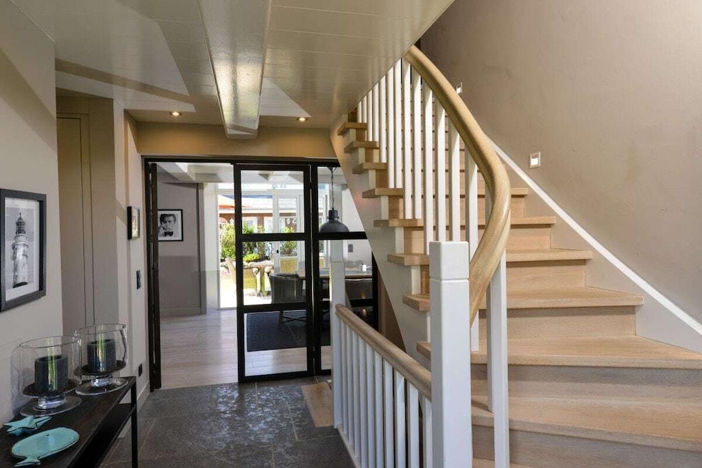 Stueetage: (Stue(, , bibliotek, Fjernsyn, Fjernsyn, pejs, DVD-afspiller, Blu-ray afspiller, CD-afspiller, stereoanlæg, varme), Køkken(, , tekøkken, spisebord, radio, kogeplade, elkedel, brødrister, kaffemaskine, ovn, opvaskemaskine , køleskab, fryser, varme), badeværelse(badekar, bruser, håndvask, føntørrer, ), badeværelse(badekar, bruser, håndvask, føntørrer, ), badeværelse(badekar, bruser, håndvask, føntørrer, ), guest toilet(, toilet, håndvask, varme), pulterkammer(, tørretumbler, vaskemaskine, strygebræt, strygejern, tørreskab)) Kælderetage: (varme) Loft: (soveværelse(enkeltsovesofa, dobbeltseng, dobbeltseng, dobbeltseng), soveværelse(enkeltsovesofa, dobbeltseng, dobbeltseng, dobbeltseng), soveværelse(enkeltsovesofa, dobbeltseng, dobbeltseng, dobbeltseng), soveværelse(enkeltsovesofa, dobbeltseng, dobbeltseng, dobbeltseng)) , , , , loungerum(sauna), Internetadgang, Internetadgang, Førstehjælp, tørretumbler, vaskemaskine, terrasse(, Strand, havemøbler), have(Strand, havemøbler), strygebræt, strygejern, tørreskab