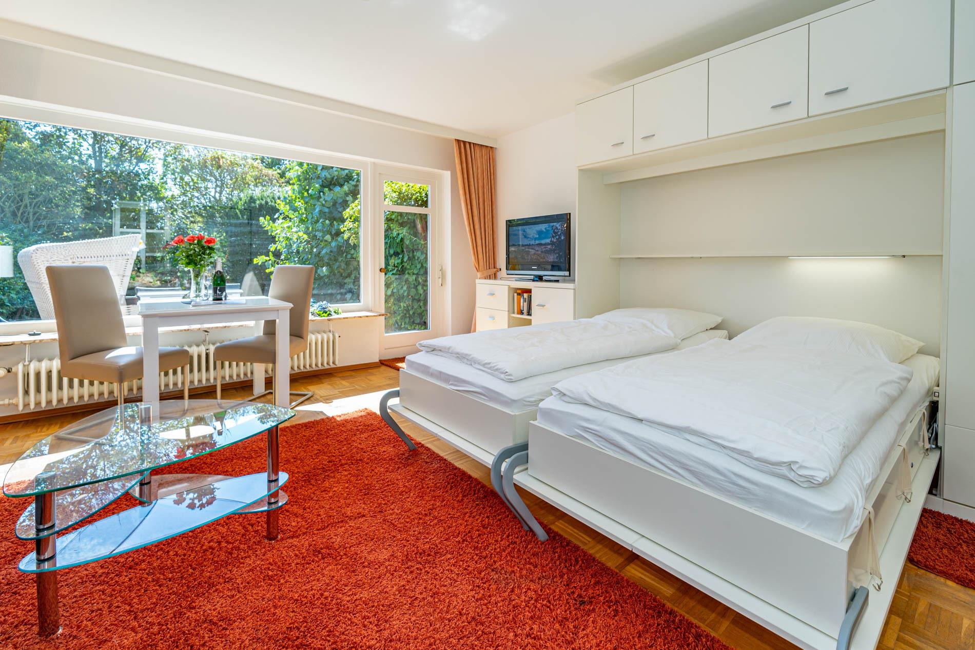 Diese großzügig geschnittene, renovierte 1-Zimmer-Nichtraucherwohnung (ca. 40 m²) befindet sich im Erdgeschoss eines gepflegten Hauses in angenehm ruhiger Wohnlage – ideal für erholsame Urlaubstage zu zweit. Die charmante Ferienwohnung überzeugt mit einem durchdachten Grundriss, hochwertiger Ausstattung und einem sonnigen Außenbereich.