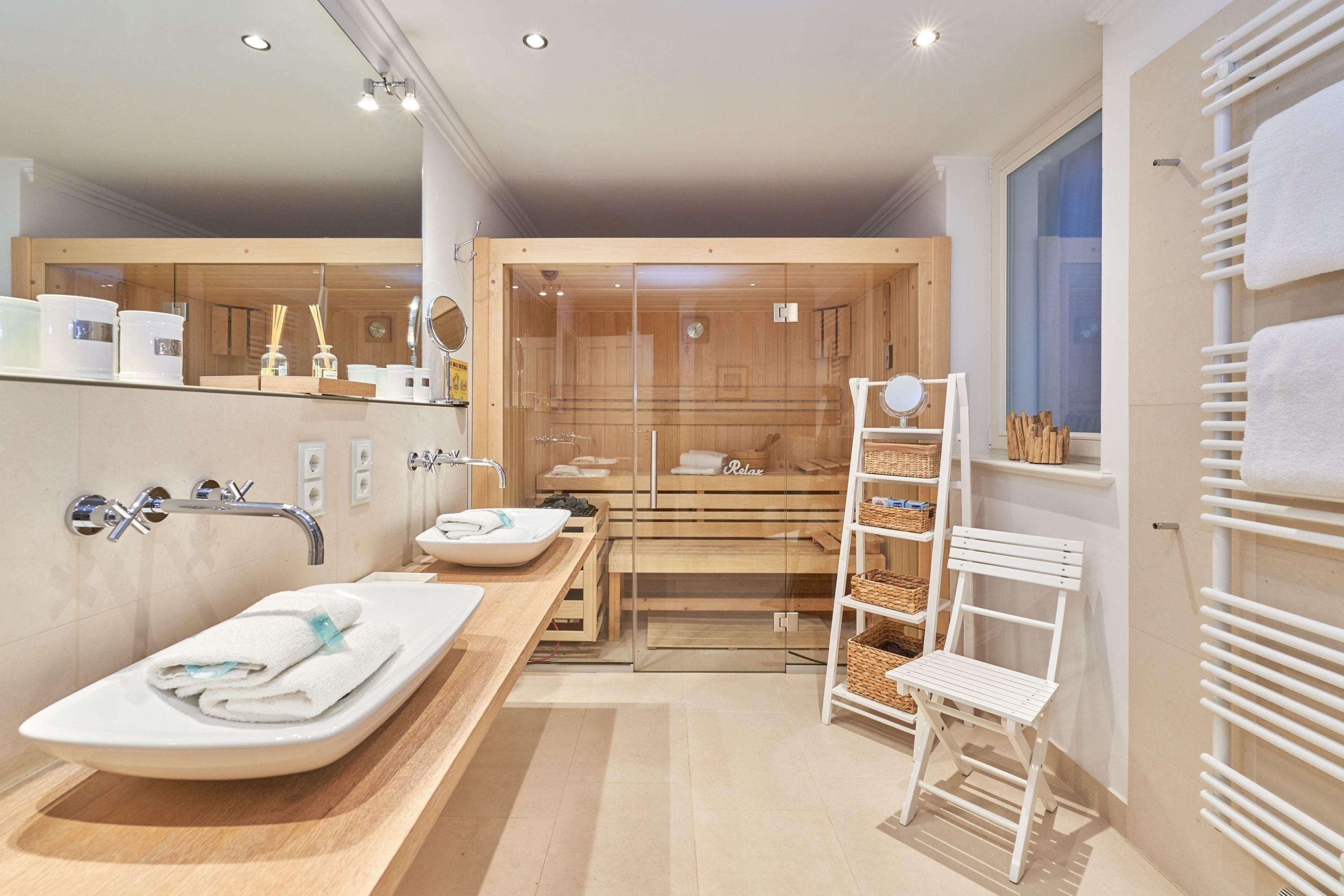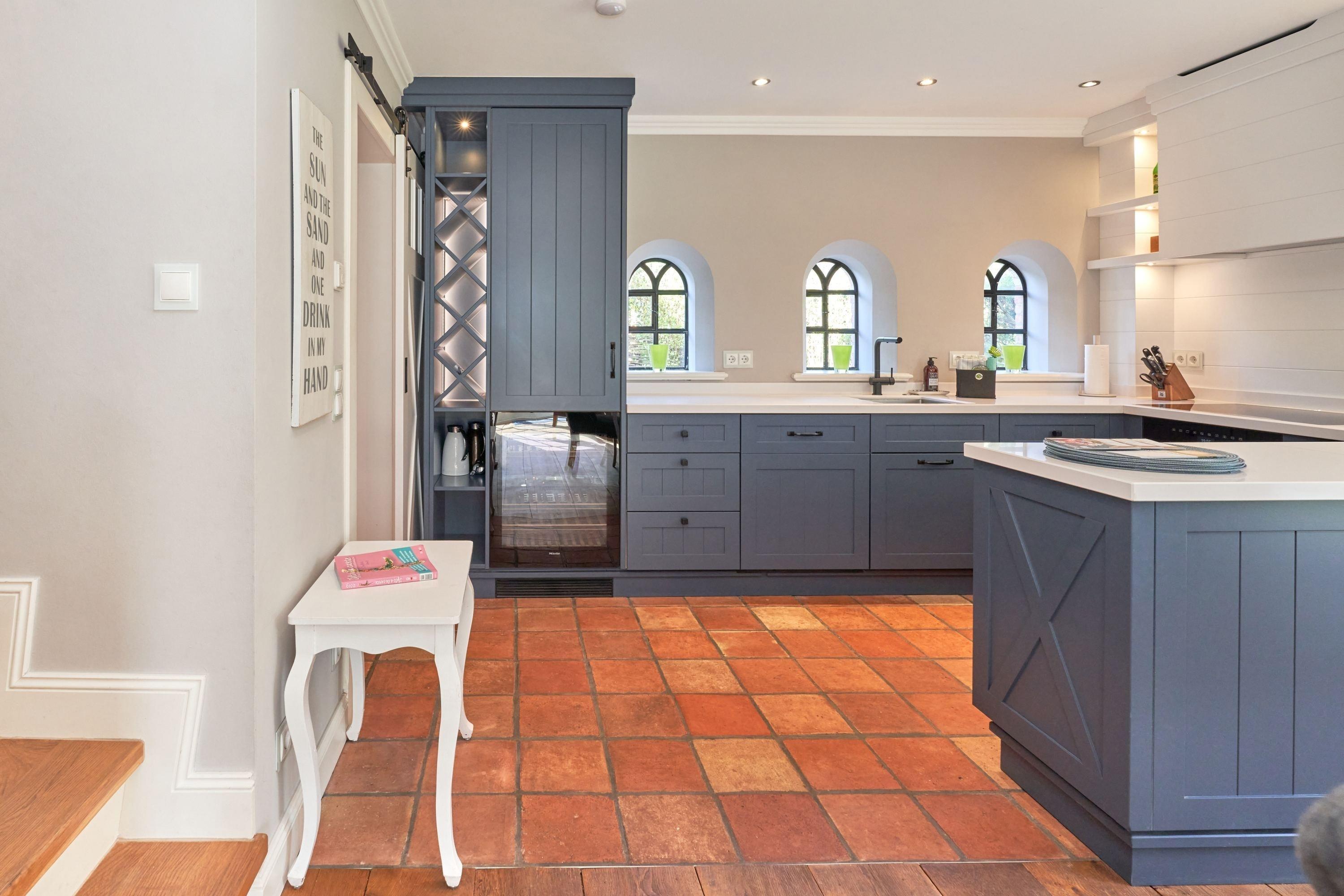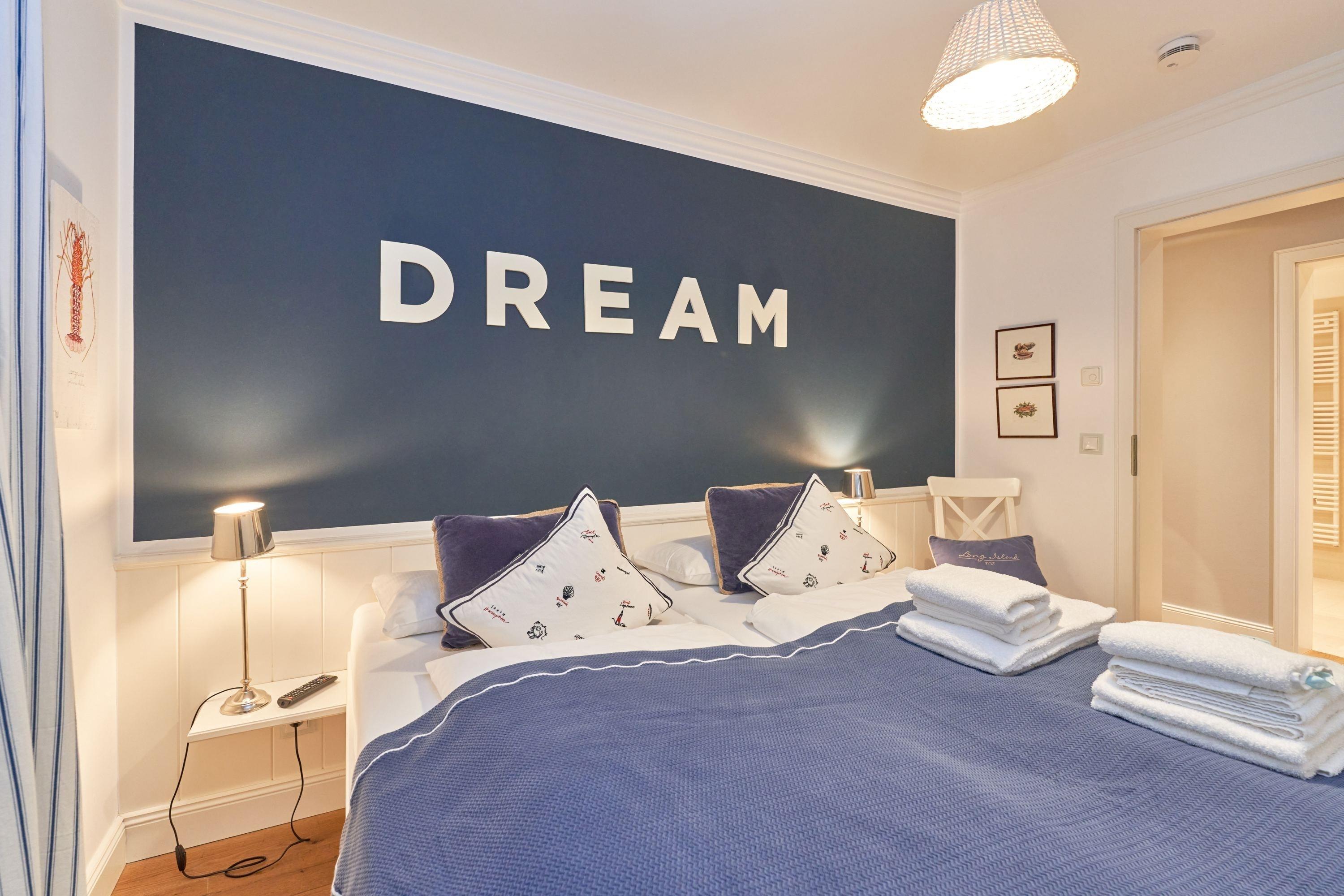 Exklusive Doppelhaushälfte unter Reet im Hampton Style für bis zu 8 Personen. Außen Sylt , innen Hamptons. Über einen kleinen Vorflur mit Garderobe gelangt man in das großzügige Wohnzimmer mit seiner offenen Küche mit den angrenzenden Essplatz für gemütliche Abende. Auffällig und besonders neben der hochwertigen Ausstattung ist das Beleuchtungskonzept sowie die Holzeinbauten mit IPhone - Ladestationen. Im Obergeschoss verfügt über zwei Schlafzimmer und ein Badezimmer mit bodengleicher Dusche. Der ausgebaute Spitzboden verfügt über zwei weitere Einzelbetten. Im Untergeschoss befindet ein Schlafzimmer mit Doppelbett und Schrankeinbauten sowie ein weiteres Wohn und Schlafzimmer. Eine Sauna mit großzügigen Bad ist ebenfalls vorhanden. Der Technik und Hauswirtschafsraum verfügt über eine Waschmaschine und Trockner.