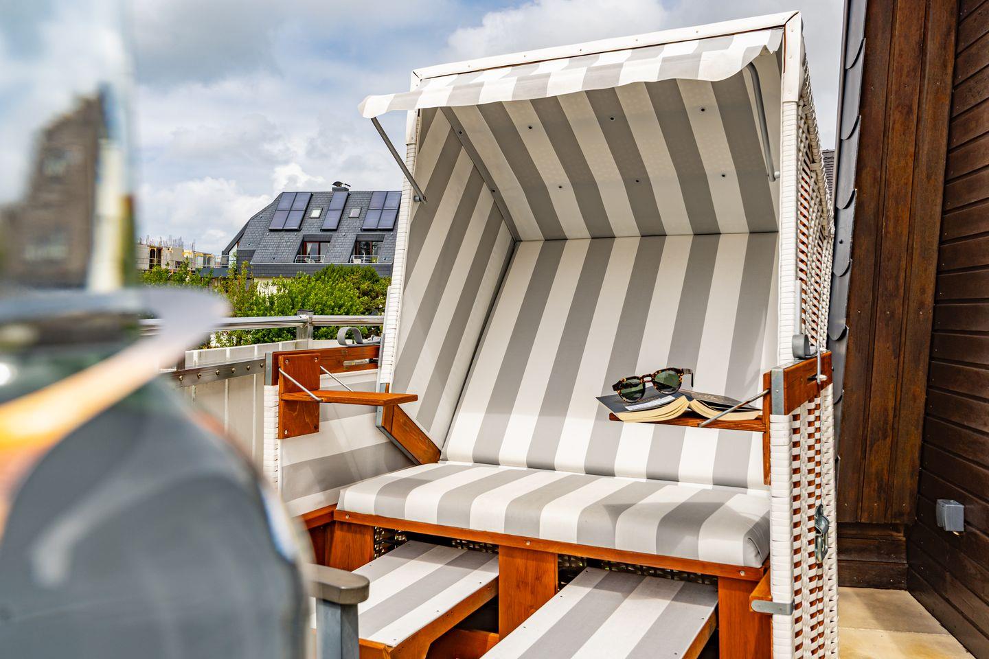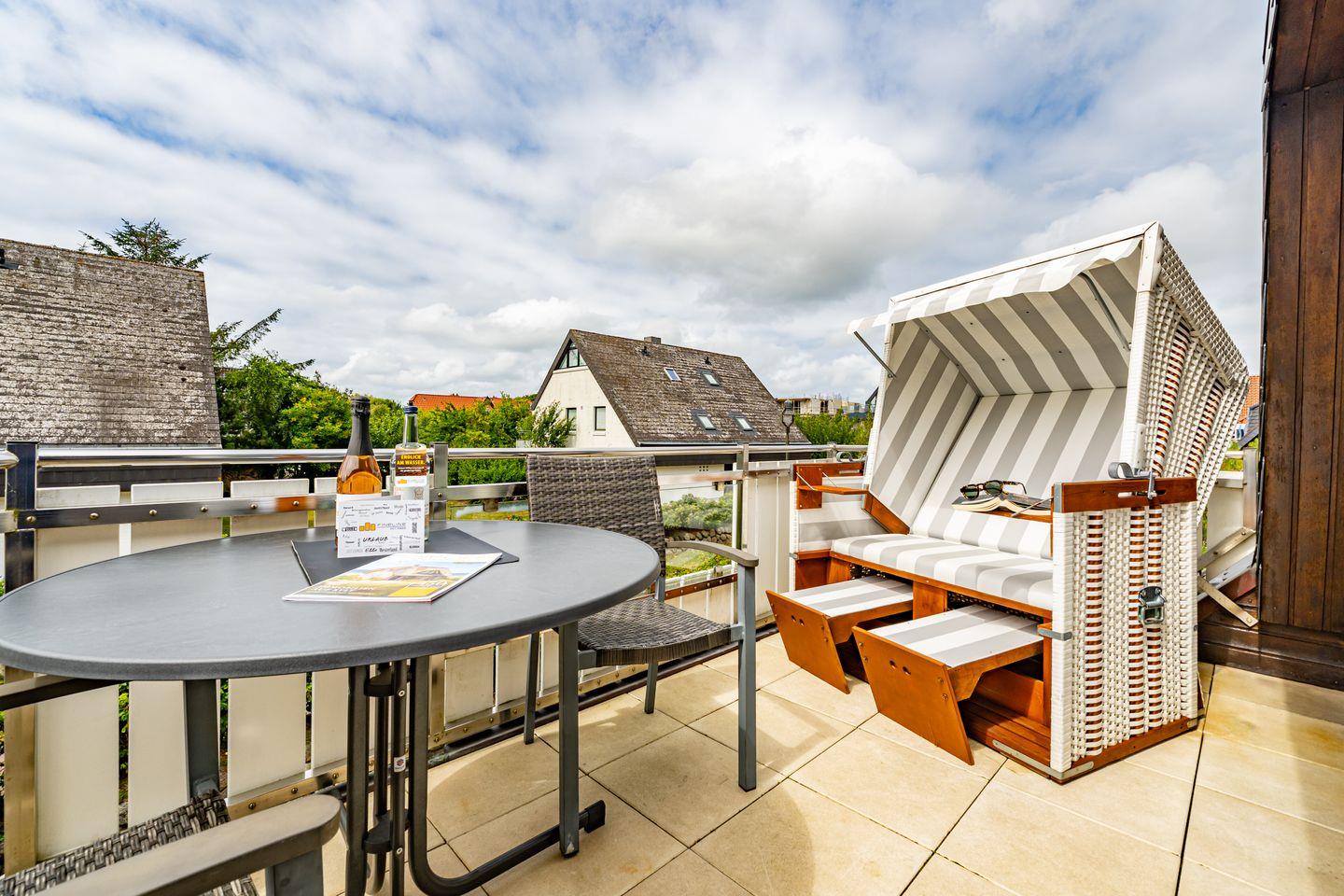 Diese gemütliche Ferienwohnung bietet Platz für bis zu vier Personen und verfügt über zwei Schlafzimmer, eine offene, gut ausgestattete Küche sowie ein helles Wohnzimmer. Genießen Sie den Balkon mit Gartenmöbeln und Strandkorb.