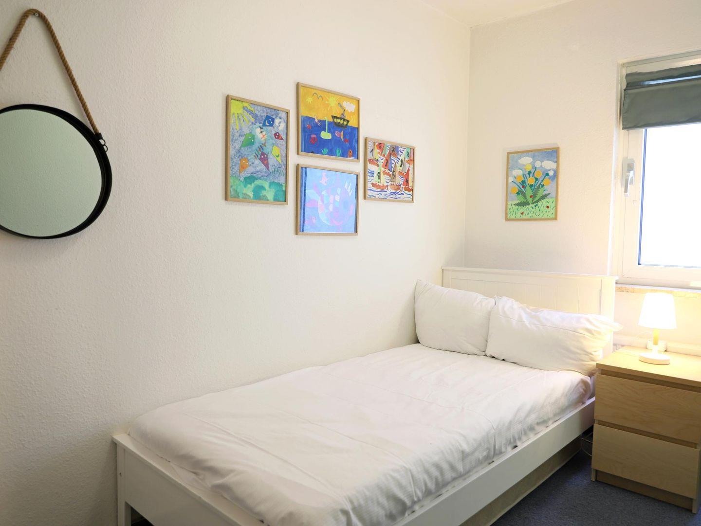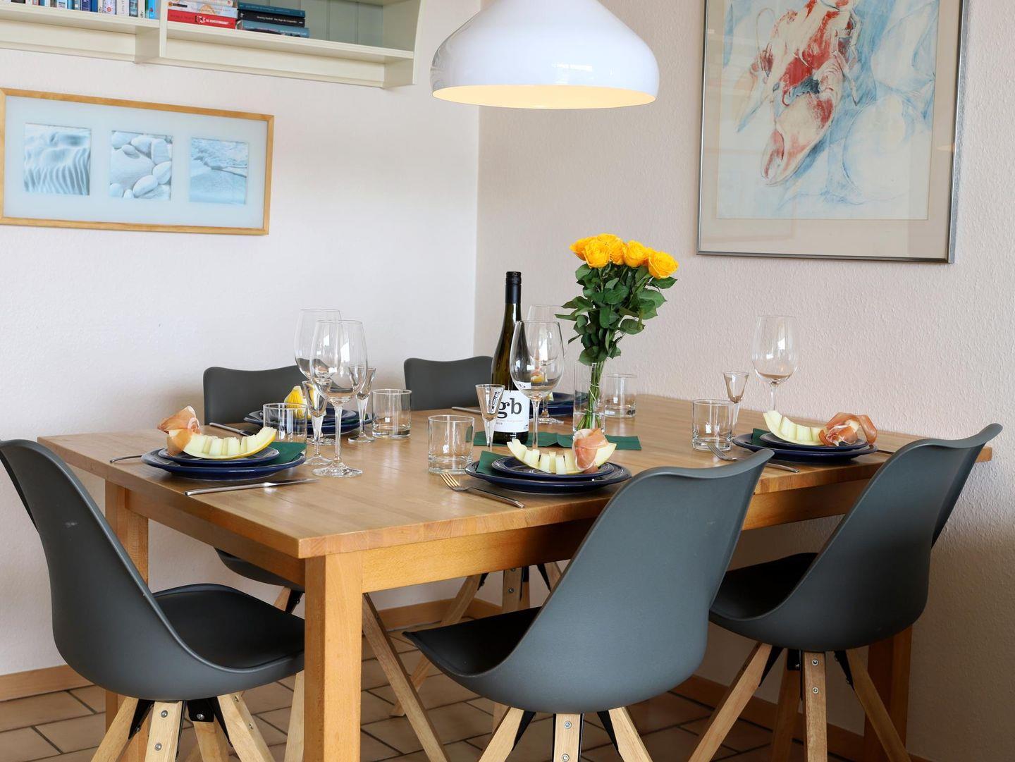Willkommen in dieser gepflegten Ferienwohnung in ruhiger Lage am Ortsrand von Wenningstedt. Die ca. 75 m² große Wohnung bietet Platz für bis zu 5 Personen und erstreckt sich über zwei Ebenen: Erdgeschoss und Souterrain. Der Strand ist in wenigen Minuten erreichbar. Im Erdgeschoss befinden sich der Wohnbereich sowie ein Schlafzimmer mit Doppelbett (180 × 200 cm). Die weiteren Schlafzimmer, eines mit Doppelbett (180 × 200 cm) und eines mit Einzelbett (90 × 200 cm), sowie das Badezimmer liegen im Souterrain. Das Badezimmer ist ausschließlich auf dieser Ebene vorhanden. Innerhalb der Wohnung müssen Treppen genutzt werden, sie ist daher nicht barrierefrei und nur eingeschränkt für Gäste mit Gehproblemen geeignet. Die sonnige Süd-Terrasse mit Gartentisch, Stühlen und eigenem Strandkorb (April–Oktober) lädt zum Entspannen ein. Ein Stellplatz sowie ein Fahrradständer sind vorhanden (kein garantierter Stellplatz). Die Wohnung ist haustierfreundlich, Nichtraucher und ideal für Familien oder Gäste, die mit der Aufteilung über zwei Ebenen gut zurechtkommen.