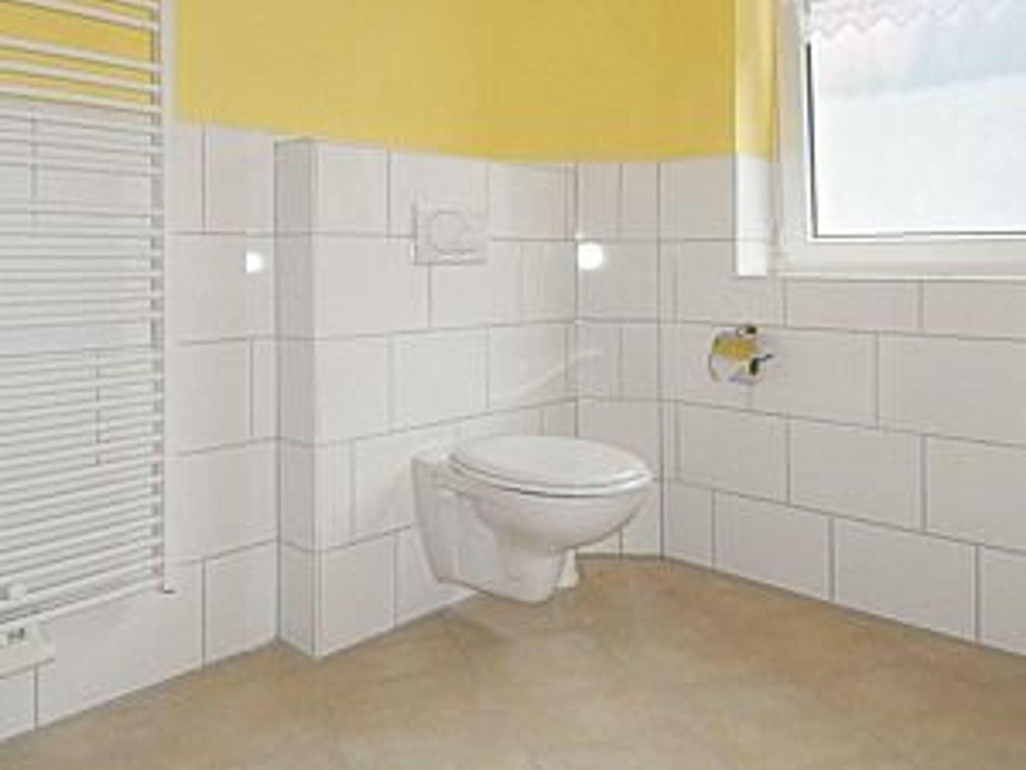 Badezimmer mit Dusche, Waschtisch und WC