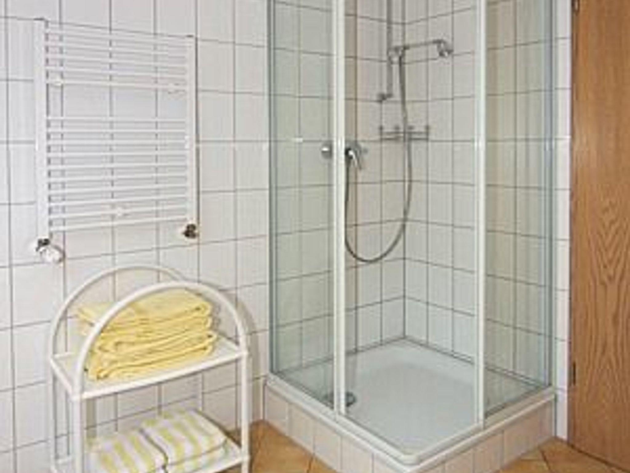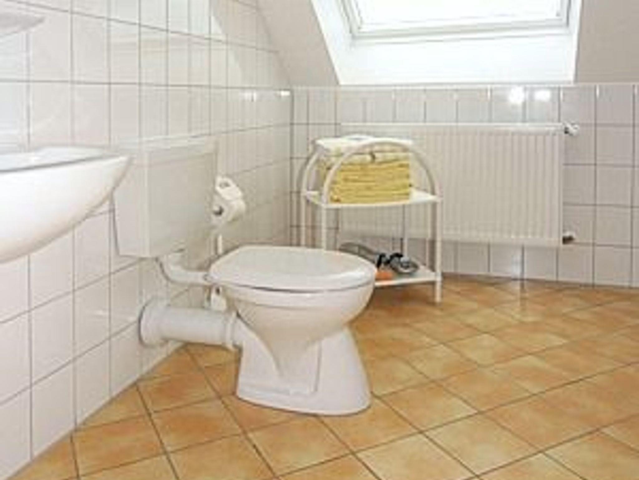 Badezimmer mit Dusche, Waschtisch und WC