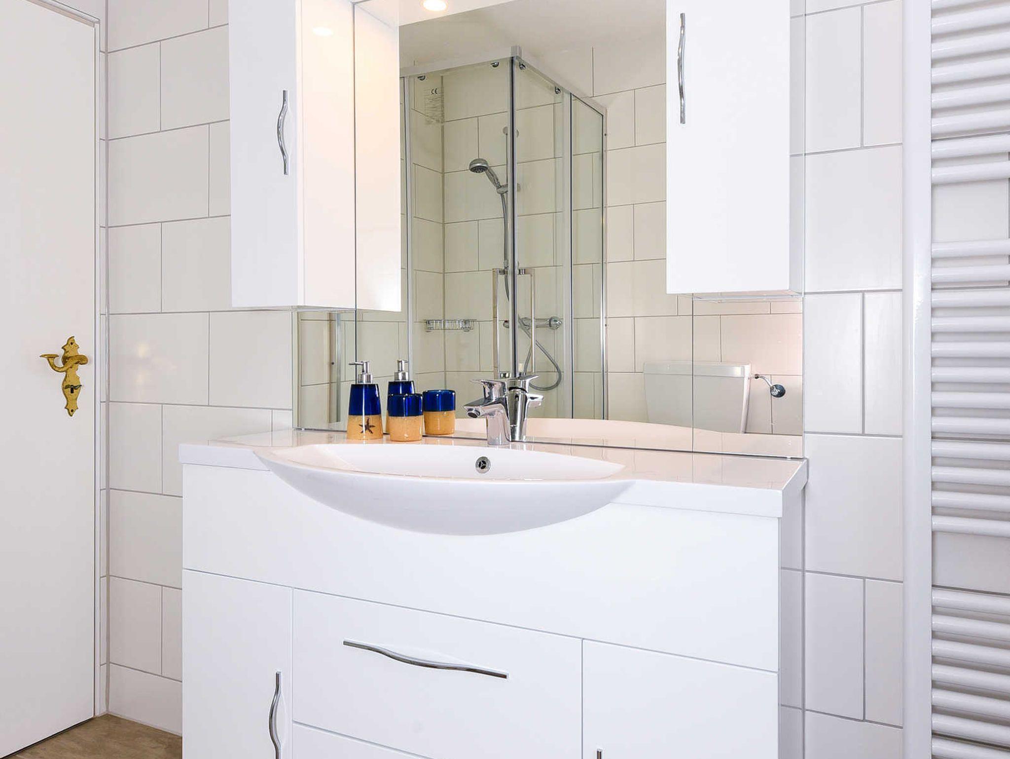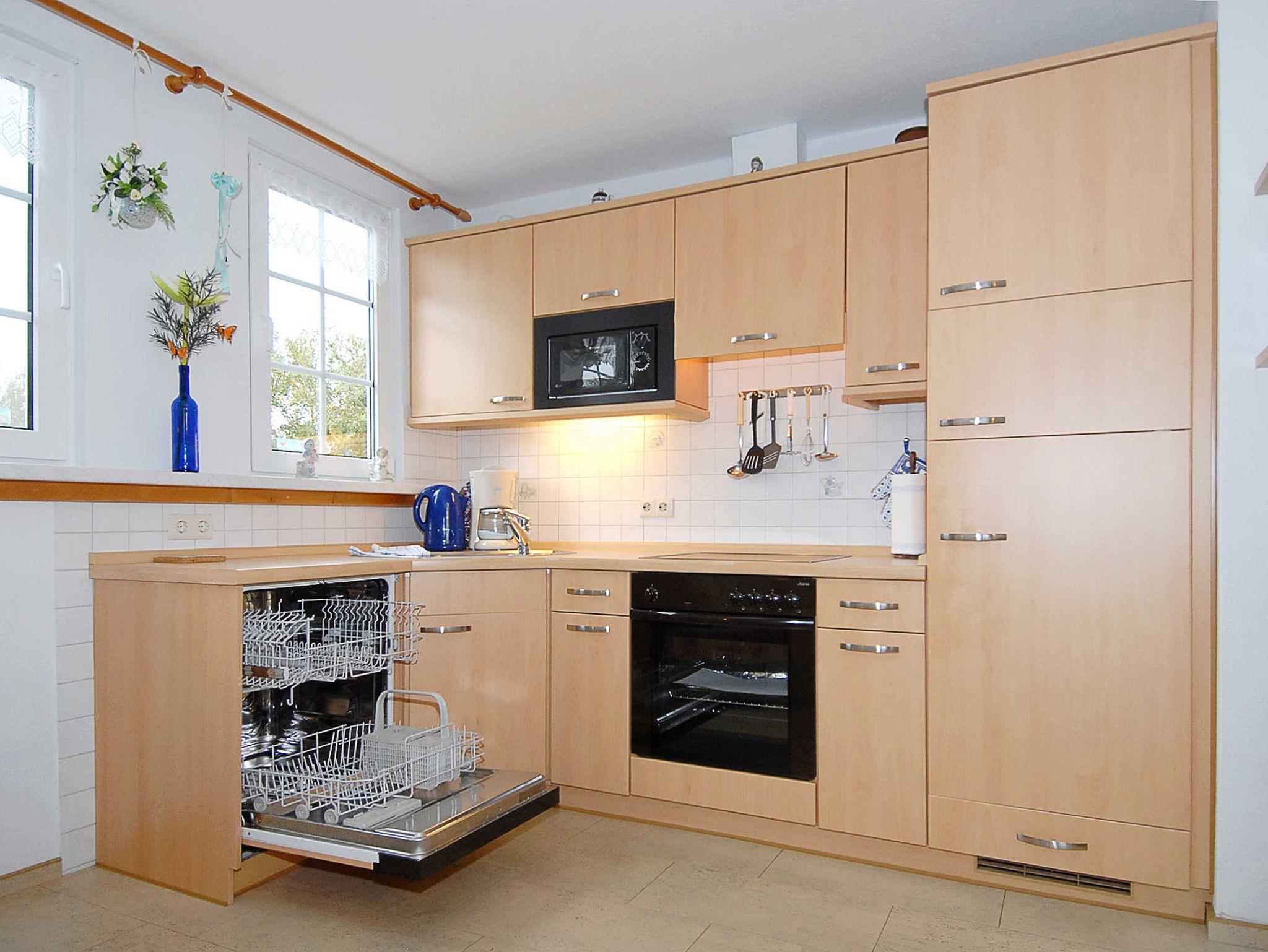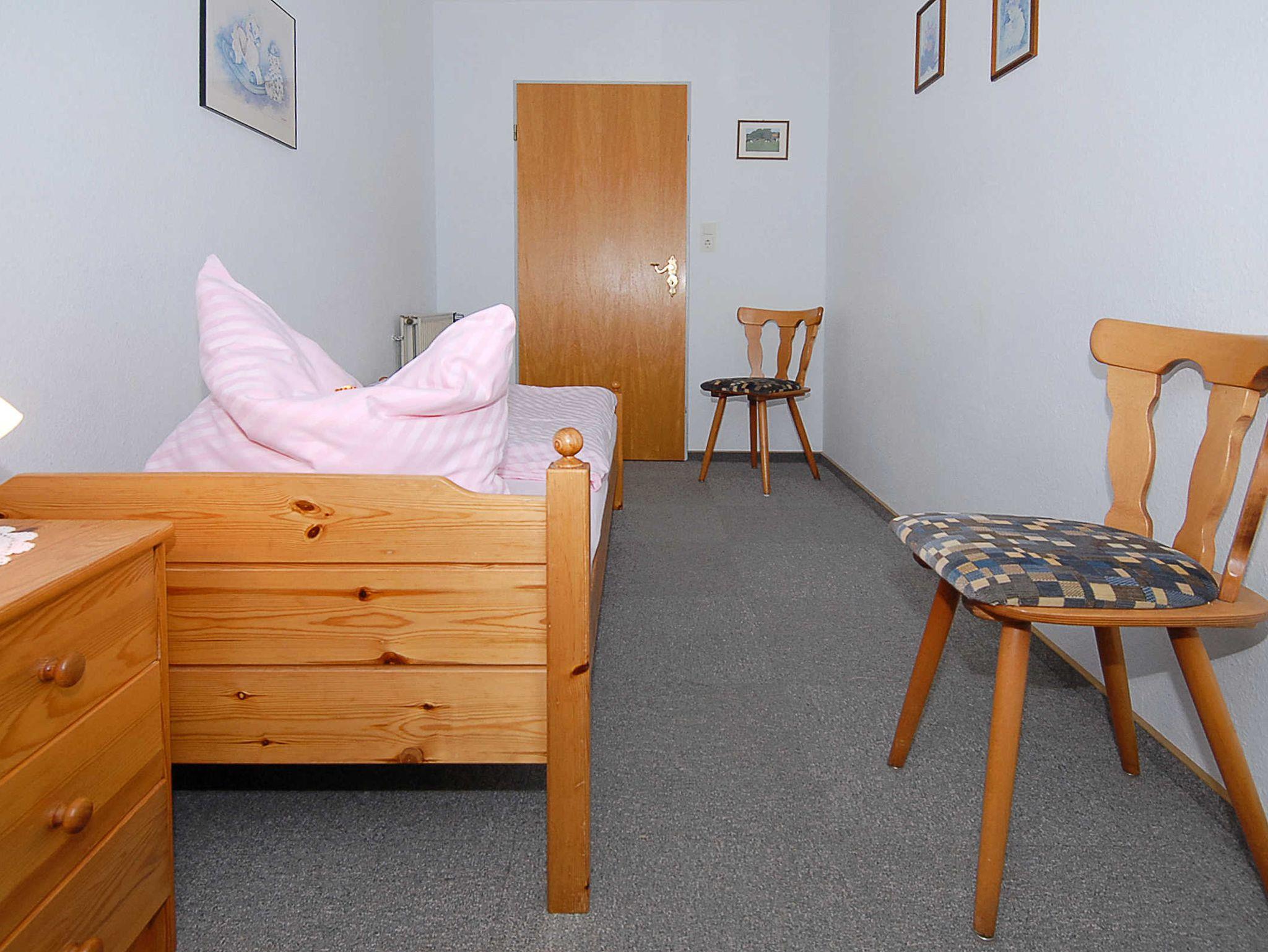 Größe ca. 70 Quadratmeter, Wohnraum mit integrierter Küche, Schlafzimmer, zweites separates Schlafzimmer/Kinderzimmer, Badezimmer mit Dusche, Waschtisch und WC, Obergeschoss, Balkon, optimal für 2 bis 4 Personen.