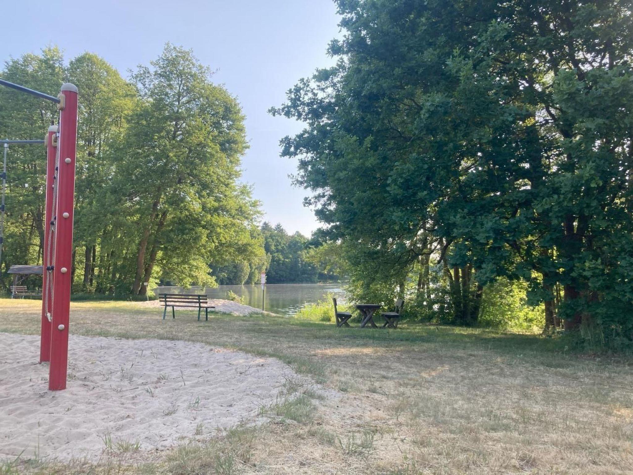 Drosedow, a village with less than60 inhabitants, is located on the Krummen Woklowersee between Wesenberg and Rheinsberg. If you are looking for peace, water, forest, nature, you have come to the right place. The bungalow is located in a bungalow settlement, surrounded by forest, by the lake. There is a public bathing area with sun terrace, bridge, table tennis tables, playground, toilet. The bungalow, ideal for two people, offers two small rooms, the first room contains the kitchenette, an old kitchen cabinet (1920), a folding sofa 140x 200; 2.5 m kitchenette (sink, refrigerator, electric stove with two plates, TV. In the bedroom there is a bed 140x200cm, a two-door wardrobe, from the bedroom with blackout curtains you go through a sliding door into the bathroom, the toilet and the shower. In front of the house there is a terrace with a practical outdoor kitchen: cook with propane gas (four flames), rinse cold water. Instead of the awning, an awning was built in 2018, which eliminates the annoying clearing away of the cushions. Sunbathing lawn, barbecue, fireplace. The environment is ideal for jogging, cycling, rowing, paddling, fishing, swimming, hiking. There are riding and hunting opportunities. Shopping facilities: 5 km away in Wesenberg, 2 net supermarkets, all also open on Sundays during the season. Telephone and Internet do not work well with every provider. A DSL line is currently being forwarded, possibly a better network in 2024.