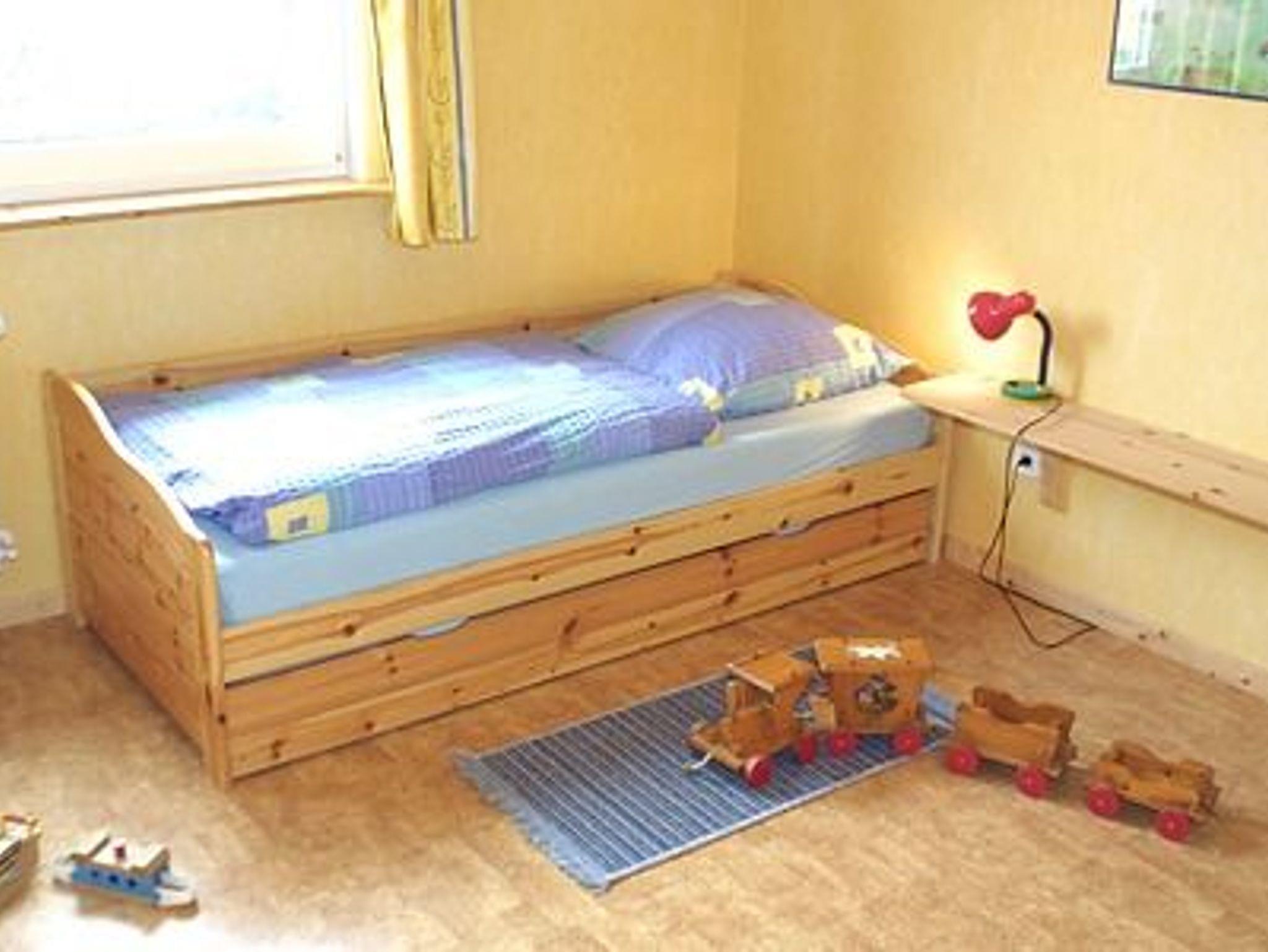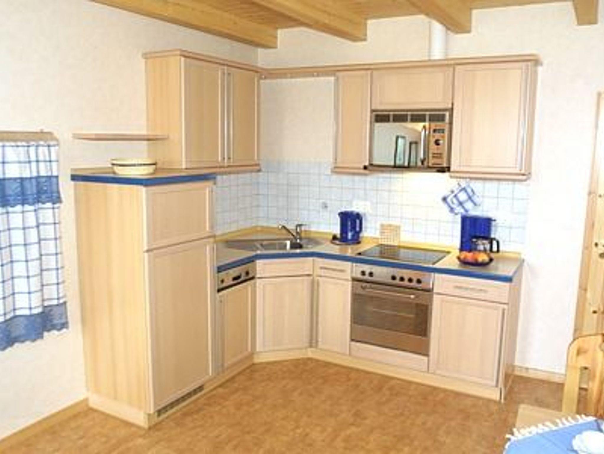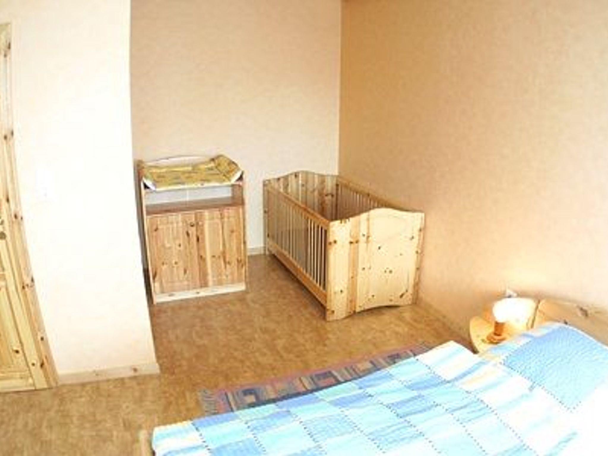 Größe ca. 90 Quadratmeter, Wohnraum mit integrierter Küche, Schlafzimmer, zweites separates Schlafzimmer/Kinderzimmer, Badezimmer mit Dusche, Waschtisch und WC, Obergeschoss, optimal für 2 bis 4 Personen.