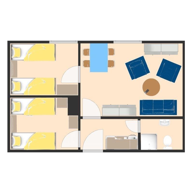 Diese einfache und dennoch gemütliche kleine 3-Zimmer-Wohnung (ca. 31 qm groß) hat 2 Schlafzimmer mit jeweils 2 Einzelbetten und ein Wohn-/ Esszimmer. Die Wohnung hat ein kleines Duschbad und eine Pantry-Küche. Fernseher mit Satellitenfernsehen ist vorhanden. Küche: Kühlschrank mit Gefrierfach, ein 2-Platten-Herd, Kaffeemaschine, Toaster, Wasserkocher sowie Geschirr, Besteck, Gläser, Töpfe und Pfannen.