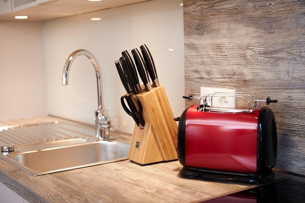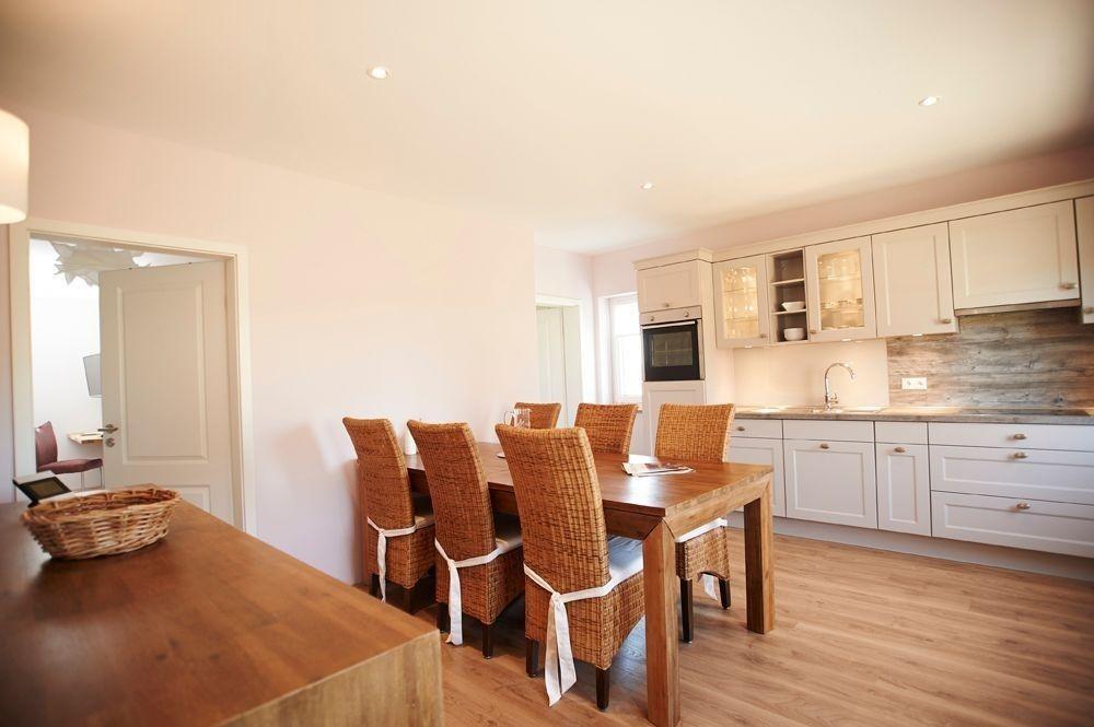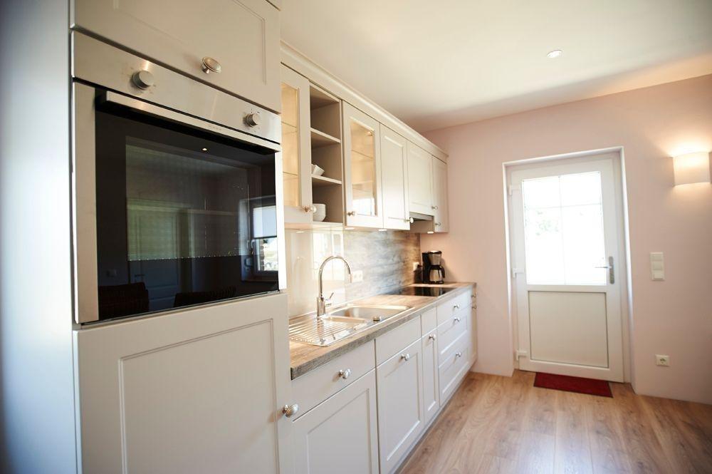 Insgesamt vermieten wir zwei Doppelzimmer mit jeweils Dusche, WC und Fön. Alle Räume sind barrierefrei und Rollstuhlfreundlich. Für beide DZ steht eine gemütliche Wohnküche zur Verfügung. Die Markenküche ist sehr gut ausgestattet mit Backofen, Spülmaschine, Kühlschrank und Ceranfeld von Miele und Neff. Kaffeemaschine und Tee, sowie Wasserkocher und Toaster vervollständigen die Küche.
