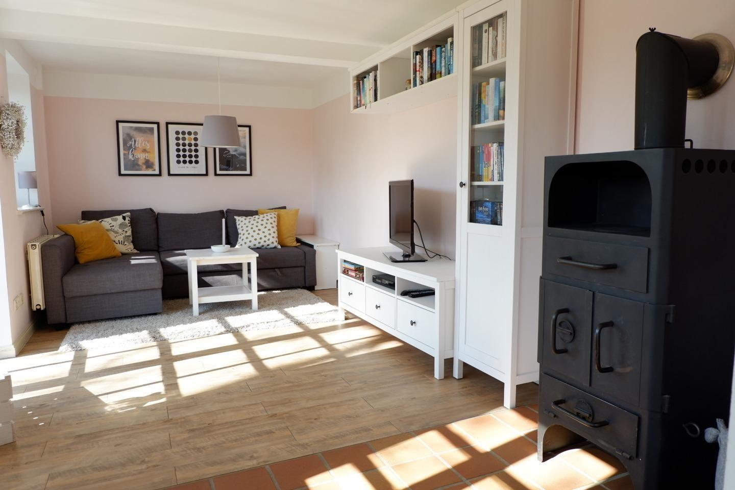Das am Ende eines kleinen Resthofes liegende Feriendomizil verfügt über 1 Wohnbereich mit Kaminofen, 1 Küche mit Essbereich, 2 separate Schlafräume, 1 Duschbad, 1 Spitzboden (Ruhe-/Spielbereich) sowie einen ca. 250 m² großen Garten.