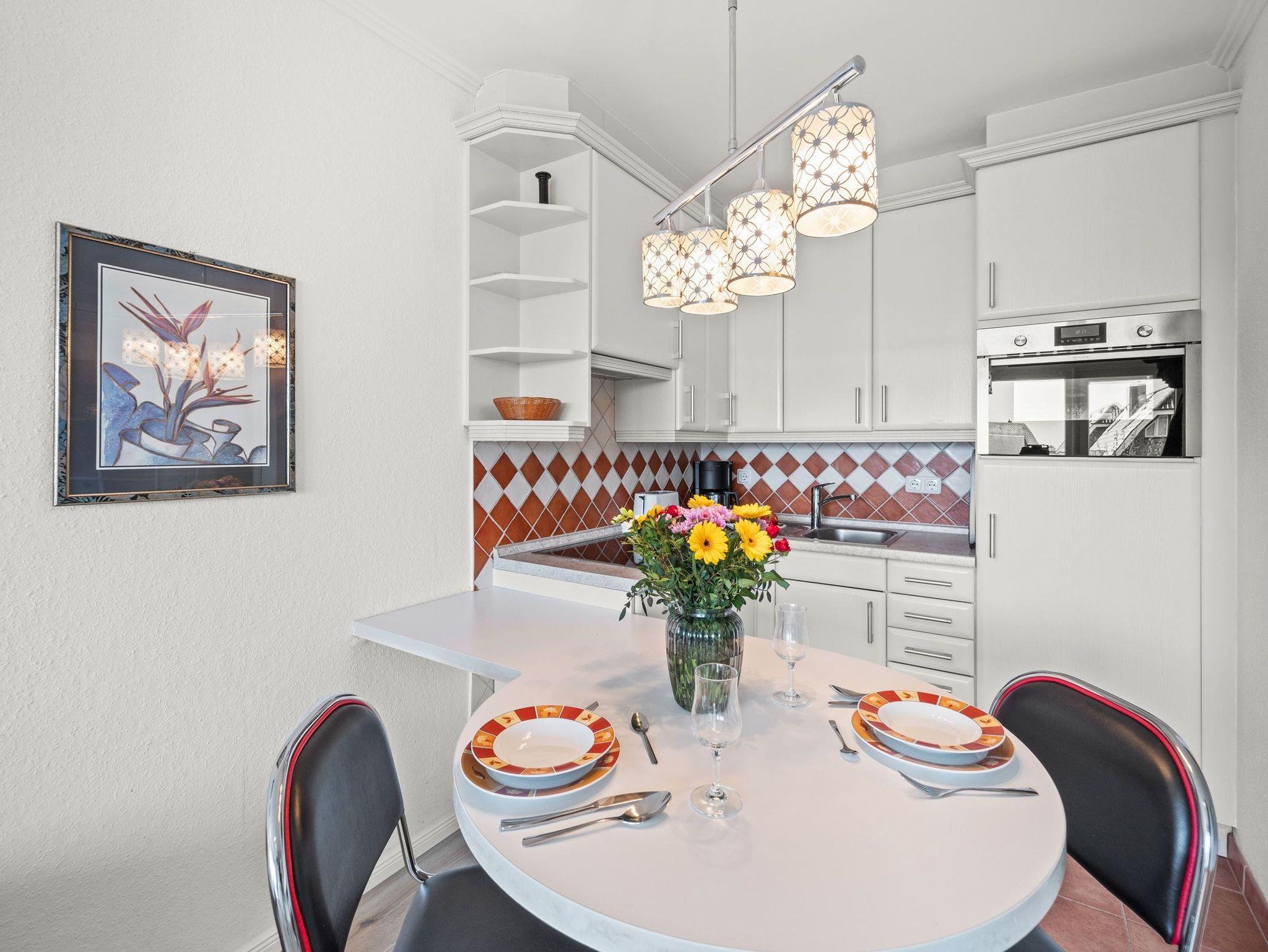 Die Unterkunft liegt im 1. Obergeschoss und hat einen großen, möblierten Balkon nach Osten. Ausgestattet mit Flachbildschirm und Radio im Wohnzimmer. Die Einbau-Küche ist mit Ceran-Kochfeld und Mikrowelle. Die Wohnung ist außerdem mit einem Internetzugang ausgestattet (gebührenfrei). Zudem steht Ihnen ein Telefon zur Verfügung, die Anrufe in das Deutsche Festnetz sind gebührenfrei für Sie. Zu der Wohnung gehört der Garagenstellplatz Nr. 11 auf der Palette (Bis 1,70 Meter Höhe). Die maximale Fahrzeugbreite beträgt 1,90 Meter, die maximale Fahrzeuglänge 5,00 Meter und die maximale Spurweite beträgt 1,85 Meter.