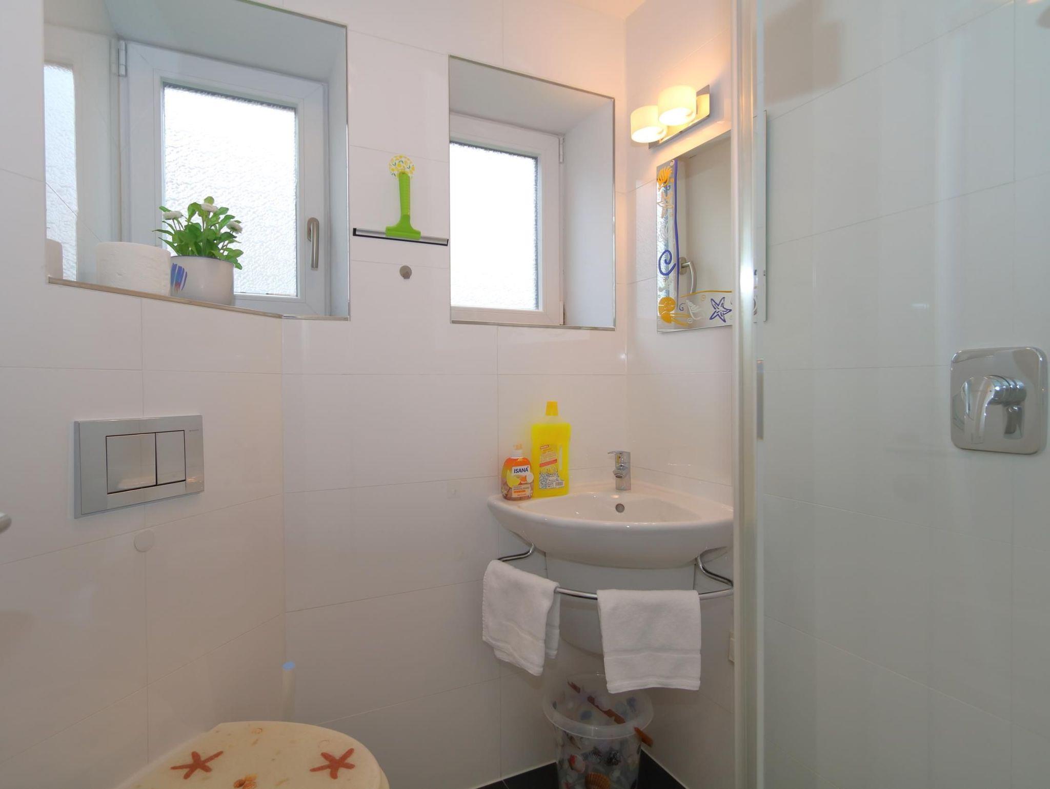 Vom Flur aus kommen Sie in das moderne Duschbad.