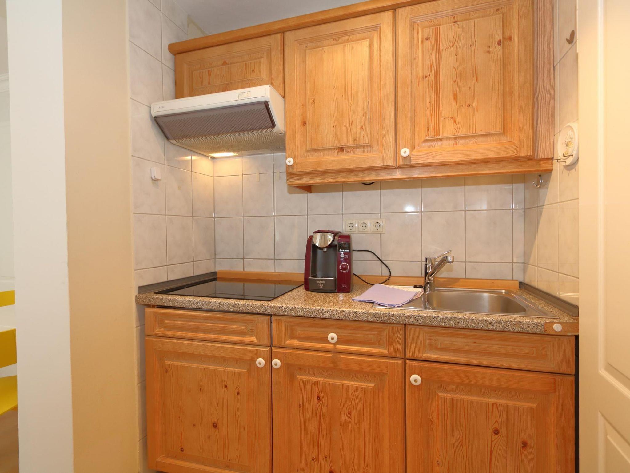 Die Küchenzeile ist mit Toaster und Kaffeemaschine sowie Wasserkocher und allen erforderlichen Küchenutensilien komplett ausgestattet.